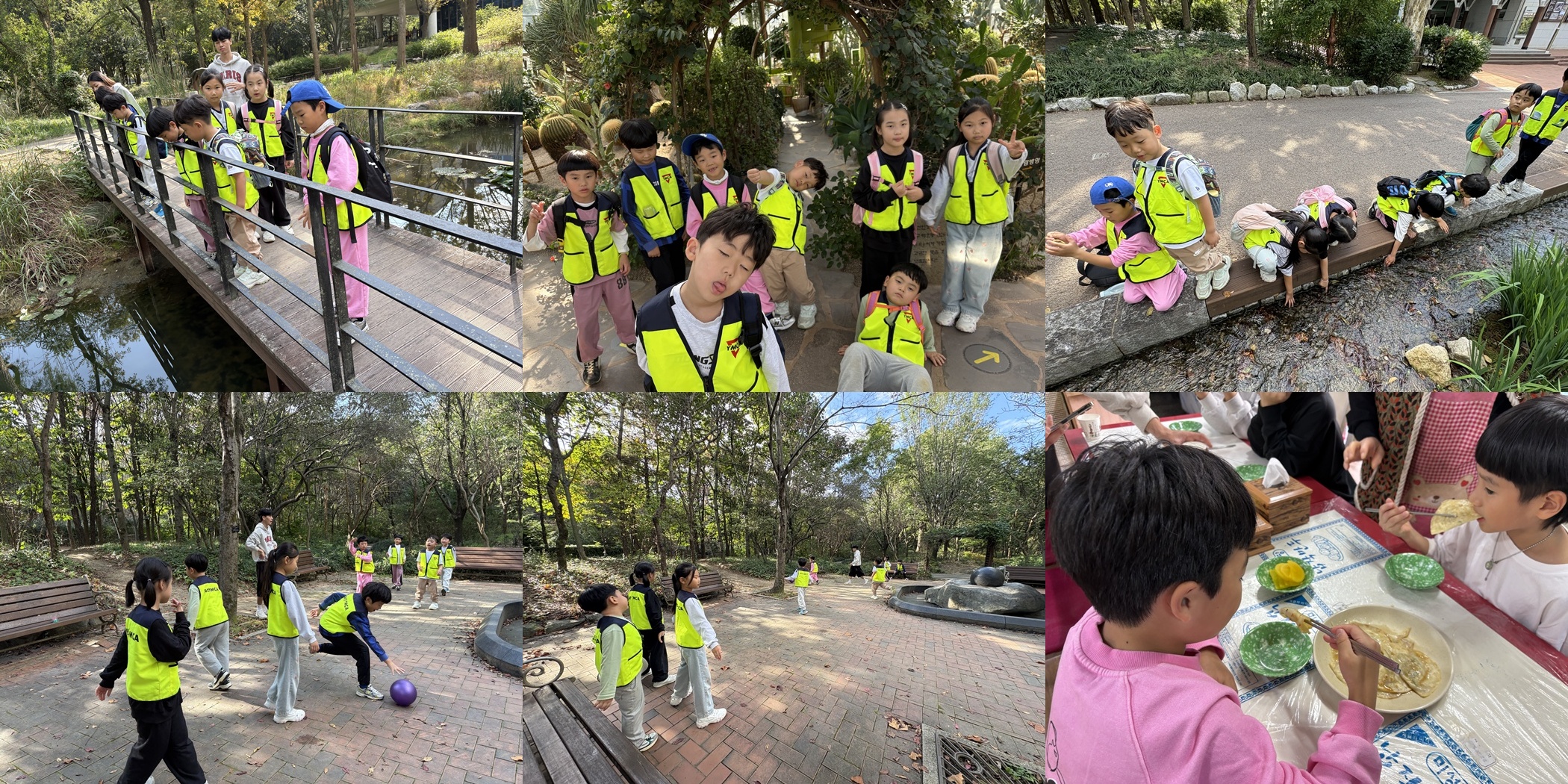 아이들은 서로 도와가며 1인당 두 개씩의 보물을 찾아 선물을 받았습니다. 드디어 기다리던 몸놀이 시간! 오늘 특별히 초빙한 ‘슛돌이 선생님’은 기대를 저버리지 않았습니다. ‘얼음땡’, ‘무궁화꽃이 피었습니다’, 피구, 축구까지—제한된 수목원 공간에서도 아이들은 온몸으로 뛰며 신나게 놀았습니다. “조금만 더요!” 외치는 아이들 덕분에 출발이 20분가량 늦어졌지만, 웃음소리가 끊이지 않는 행복한 시간이었습니다.