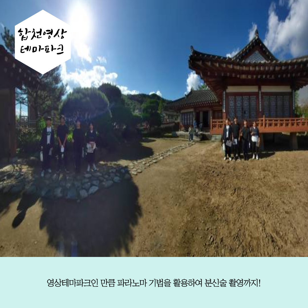 합천영상테마파크는 1920년대부터 1980년대까지의 시대를 배경으로 한 국내 최고의 특화 오픈세트장으로, 지금까지 190편이 넘는 영화·드라마·광고·뮤직비디오가 촬영된 장소입니다.