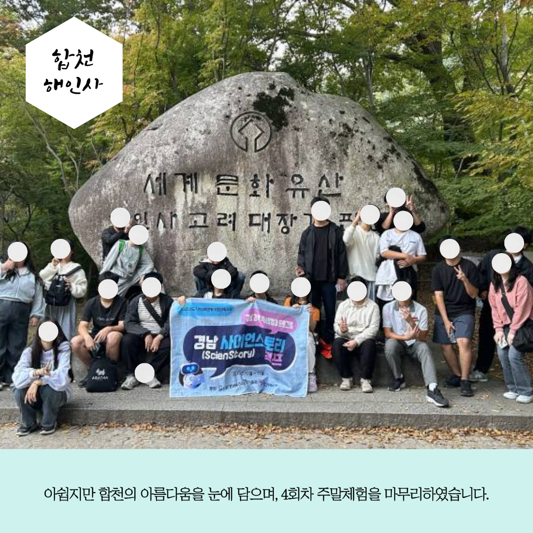 지난 10월 25일, 기댈나무는 올해 마지막 주말체험으로 마산YMCA와 함께 ‘역사와 과학을 만나는 여행’을 떠났습니다. 합천영상테마파크와 합천 해인사를 방문하며, 역사 속 선조들이 남긴 과학의 지혜를 직접 경험해보는 시간을 가졌습니다.