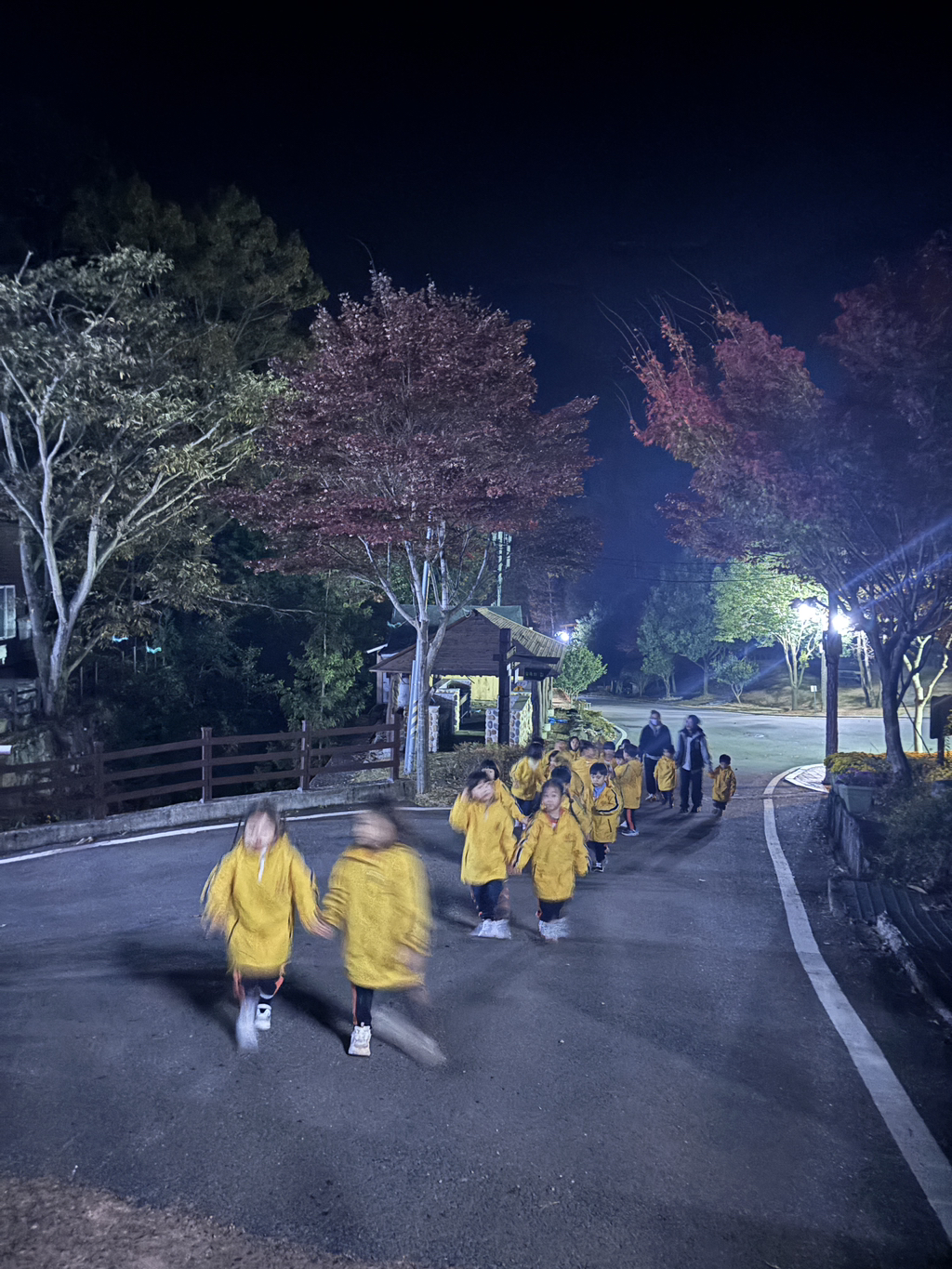 휴양림의 가을밤도 산책하고 뛰어놀고 밤이 깊도록 아이들의 웃음 소리가 끊이지 않았답니다. 신나게 뛰어놀고 먹은 어묵꼬치는 정말 꿀맛이었습니다.