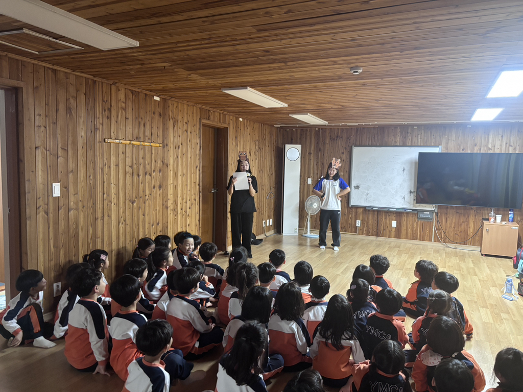 숙소에 들어가 맛난 저녁을 먹고 선생님의 동극이 있었습니다. 아이들 모든 인원이 들어가는 넓은 방이 있는 숙소여서 한자리에 모여 동극을 하였지요. 아이들이 어찌나 집중하던지요. 선생님들의 공연에 몰입해 관람하는 아이들이 참으로 사랑스러웠습니다.