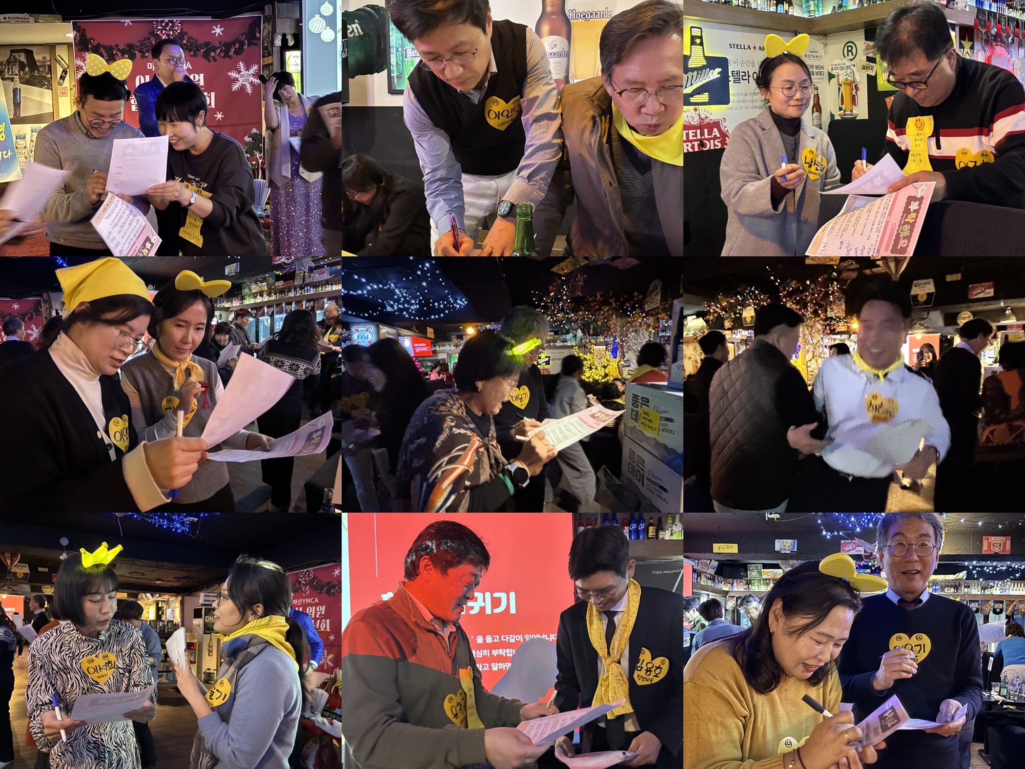 송년회 장소 선정부터 메뉴 구성까지 함께 의논하며 정하는 과정 자체가 즐거운 시간이었고, 사회를 맡은 평생교육위원회 김민정 위원님과 시민사업위원회의 옥명훈 위원님이 전체 진행을 함께 구상해가는 과정 또한 유쾌한 협업의 시간이었습니다.