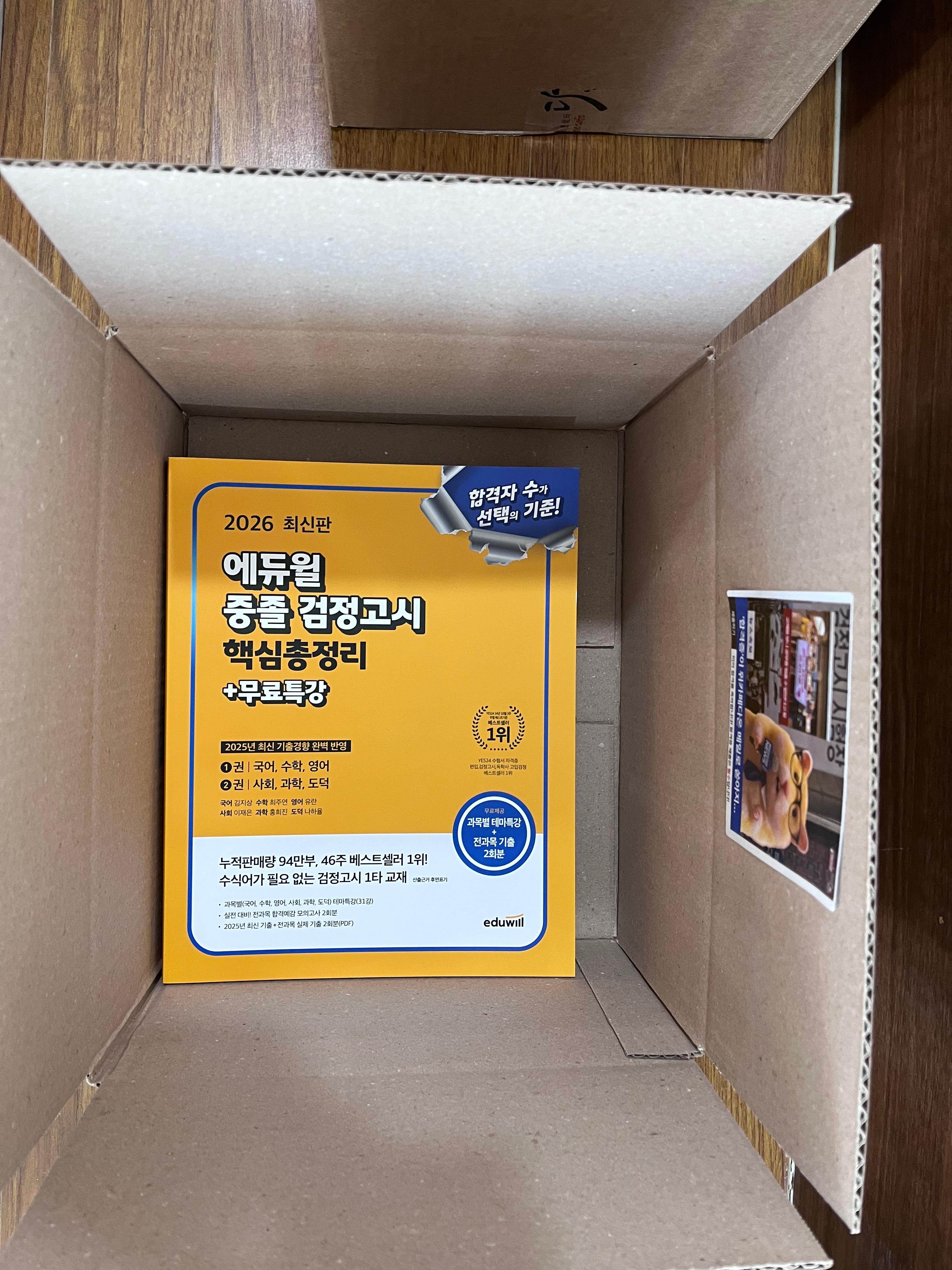 출판사는 에듀윌과 EBS, 과정은 초졸·중졸·고졸로 나누어 각자 필요한 교재를 직접 선택할 수 있도록 했습니다.