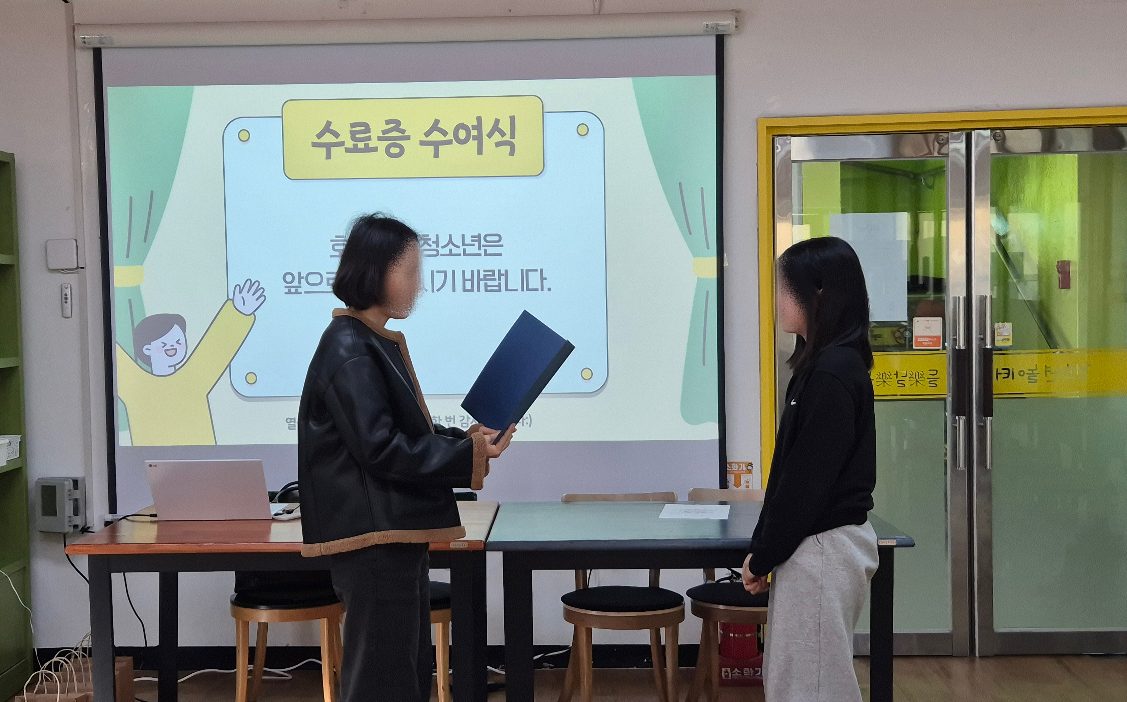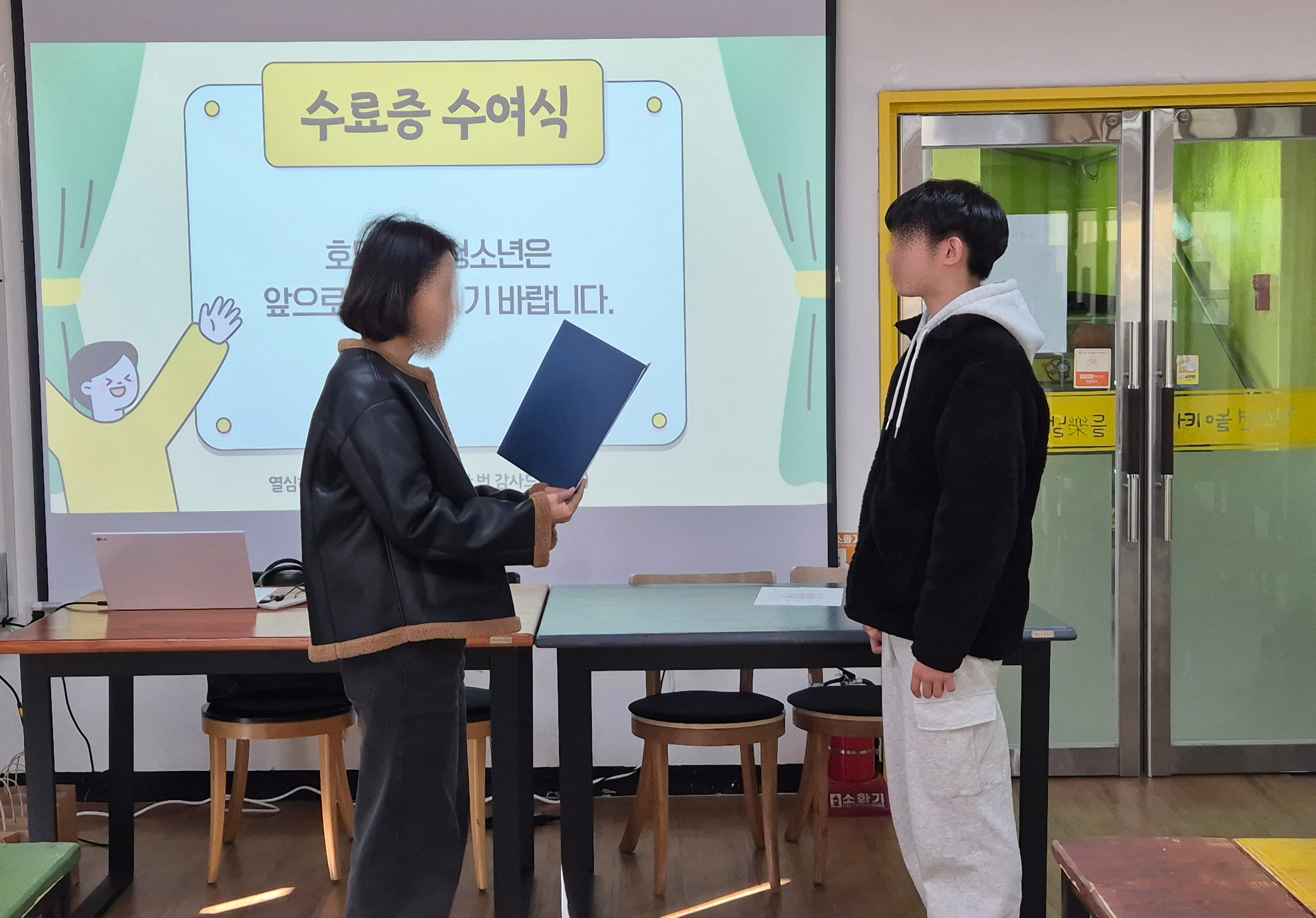 이어 서로에게 마음을 전하는 롤링페이퍼 작성과 소감 나눔, 수료증 수여 및 기념사진 촬영까지 차분하면서도
