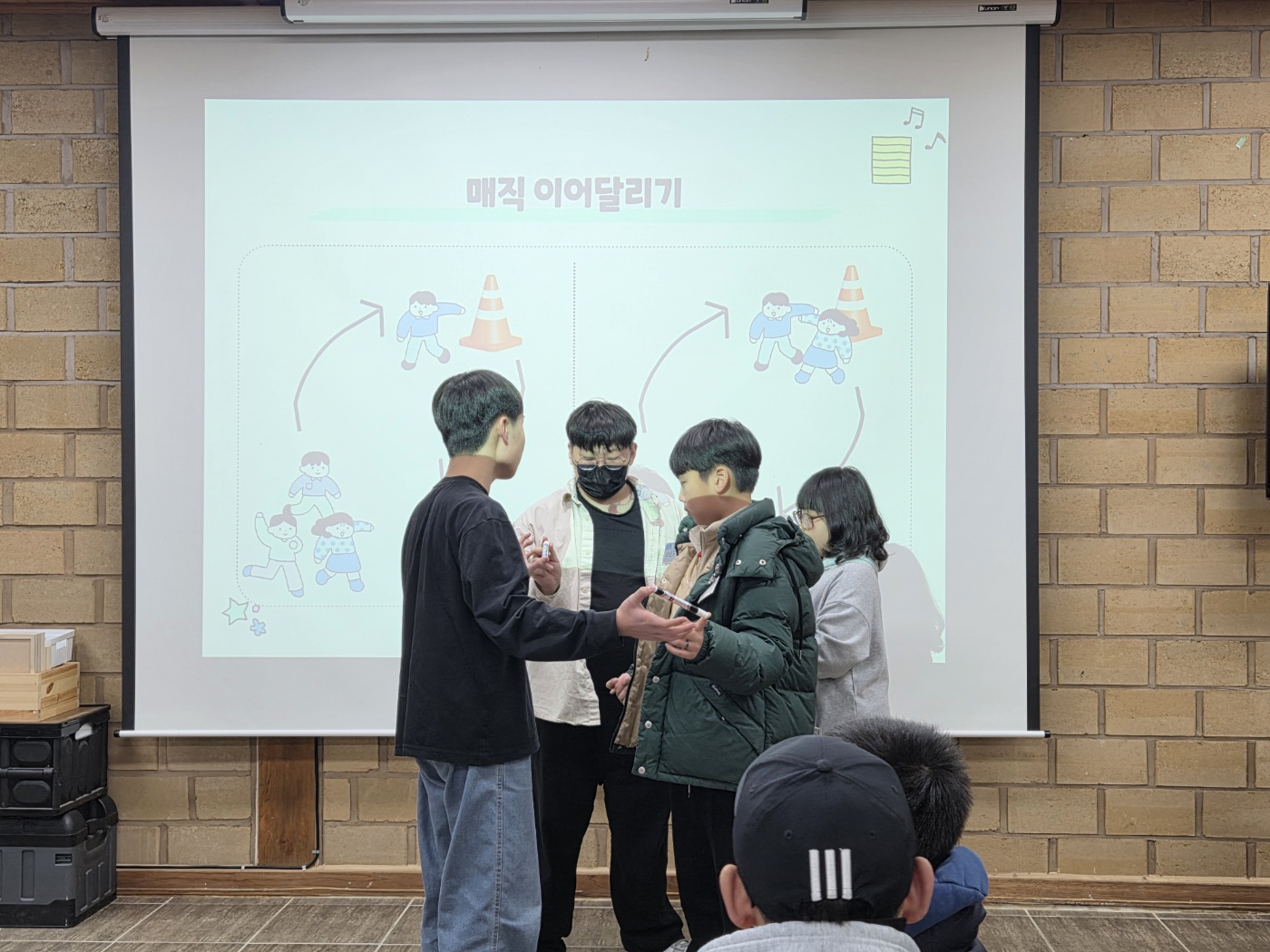 팀을 나누어 진행된 다양한 게임 속에서 아이들은 자연스럽게 협동심을 발휘했습니다. 이모지 맞추기 게임, 노래 맞추기, 매직이어달리기 등 다양한 활동이 이어지며 곳곳에서 웃음소리가 끊이지 않았습니다. 서로를 응원하고 함께 힘을 모으며 즐거운 분위기 속에서 캠프의 첫째 날이 마무리되었습니다.