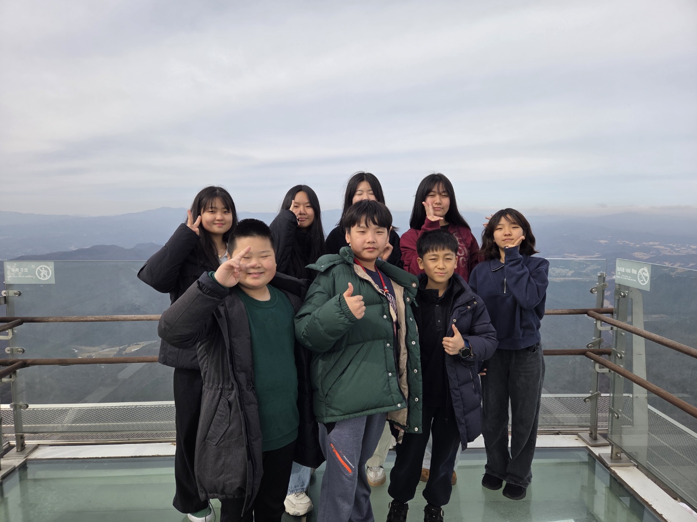 발왕산 정상에는 국내에서 가장 높은 곳에 위치한 360도 원형 전망대인 ‘발왕산 기 스카이워크’ 가 있습니다. 이곳에서 바라보는 백두대간의 웅장한 산맥은 말로 표현하기 어려울 만큼 아름다웠습니다. 탁 트인 전망 속에서 아이들은 이번 캠프의 시간을 되돌아보고, 함께한 친구들과 새롭게 시작될 새 학기를 응원하며 각자의 다짐을 나누었습니다.