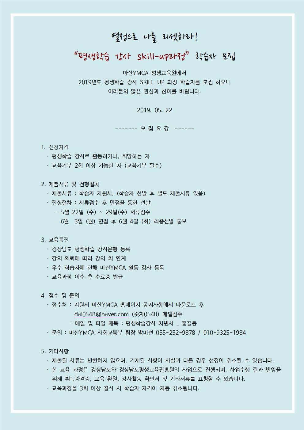 열정으로 나를 리셋하라 “평생학습 강사 skill-up과정”에 참여할 학습자를 모집합니다.