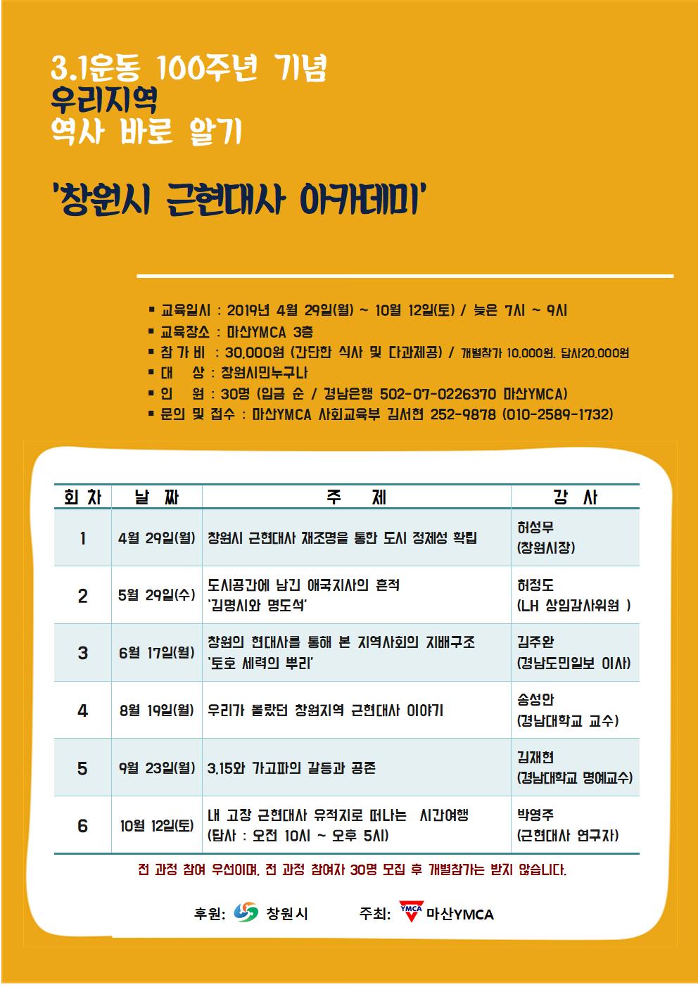 마산YMCA(이사장 박영민)가 준비한 근현대사아카데미