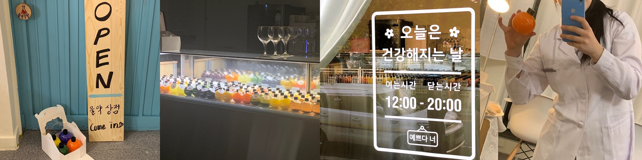 지친 현대인들을 위해 게임에서 아이디어를 얻어 '물약'이라고 상품 이름을 지어 재미있게 사람들에게 건강을 전달하고 자 가게를 운영중이라고 합니다. 일단 엄청 건강에 좋은 쥬스입니다.