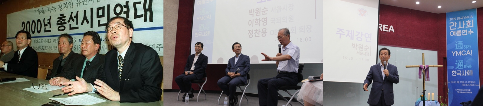 1995년 참여연대 사무처장을 시작으로 2011년 서울시장에 당선되기 전까지 한국을 대표하는 '시민운동가' 중 한 사람이었기 때문에 YMCA 지도자와 활동가들과도 인연이 아주 많은 분입니다.