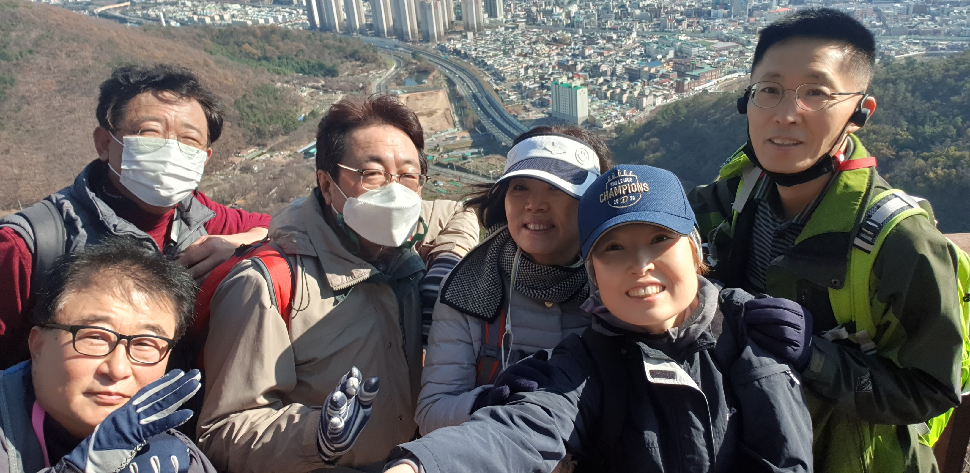 늦가을 산행이 좋은 점은 호젓하게 낙엽을 밟으며 사색에 젖을 수 있다는 겁니다. 코로나 때문에 산행을 하는 분들이 거의 없고, 우리도 그렇게 시끄럽지 않게 조금씩 얘기를 나누며 천천히 걸었습니다. 이사회나 위원회 때 할 수 없는 개인적인, 소소하지만 인생 얘기들을 하면서 서로를 더욱 깊이 알아가는 과정, 이게 둘레길 산행의 장점 아니겠습니까? 사진 멋지죠?