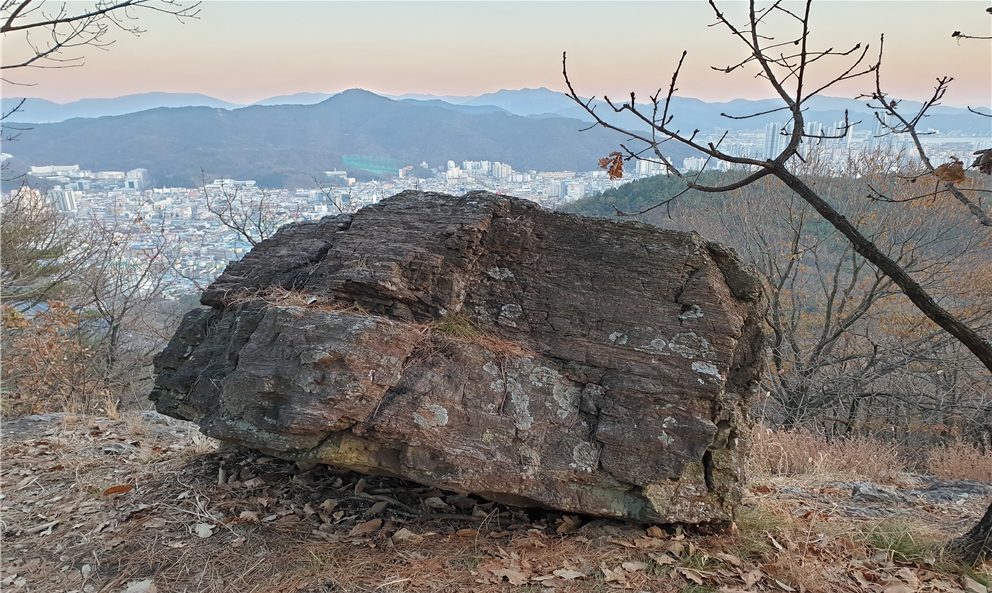 바위전망대 바로 옆에 있는 큰바위입니다. 이 바위 때문에 전망대 이름이 붙여진 것 같은데 바위의 형상과 위치가 예사롭지 않습니다. 지석묘, 즉 고인돌 같은 필이 팍 풍겼는데요, 근데 이렇게 높은 곳에 고인돌을 만들었을까요? 흥미로운 지점인데 나중에 한번 알아봐야 겠습니다.