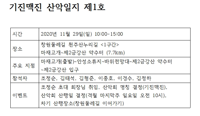 | 마산YMCA 산악회 기진맥진 연혁(20.11.29-) (0) | 2023.01.20 |