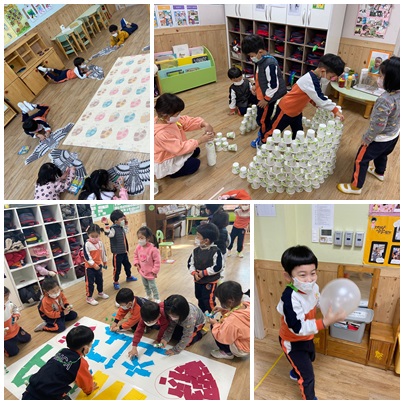 두 번째 방은 풍선 배트민턴으로 풍선을 연령에 따라 정해진 수만큼 튕겨야 나는 게임이며, 퍼즐게임방도 있었습니다. 퍼즐 또한 연령별로 난이도가 있습니다. 그리고 단어 맞추기 방에서는 몸으로 흉내를 내고 연령별로 정해진 수만큼 맞춰야 다음 방으로 이동할 수 있습니다. 마지막은 종이컵 쌓기 방이었는데, 종이컵을 높이 쌓아 아이들이 모두 숨겨져야 미션을 성공하는 거랍니다.
