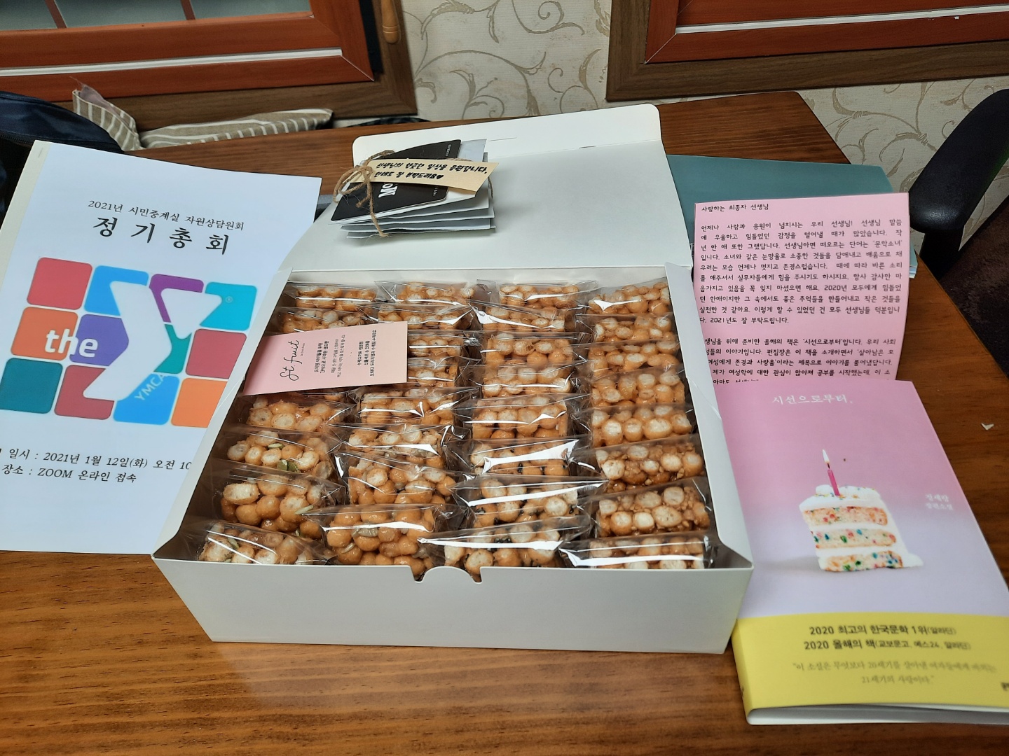 선생님들께서 직접 보내주신 후기 사진입니다. ‘시민중계실 자원상담원회 기운 팍팍!’ 키트에는 매년 선생님들께 마산YMCA가 선물하는 책 1권과 조정림 부장님의 정성이 가득 담긴 편지, 바삭바삭 맛있는 수제 오란다, 커피 한 잔 함께 나눌 수 없는 아쉬움을 담은 원두 드립백, 우리의 일 년을 담은 총회 자료로 구성되었습니다.