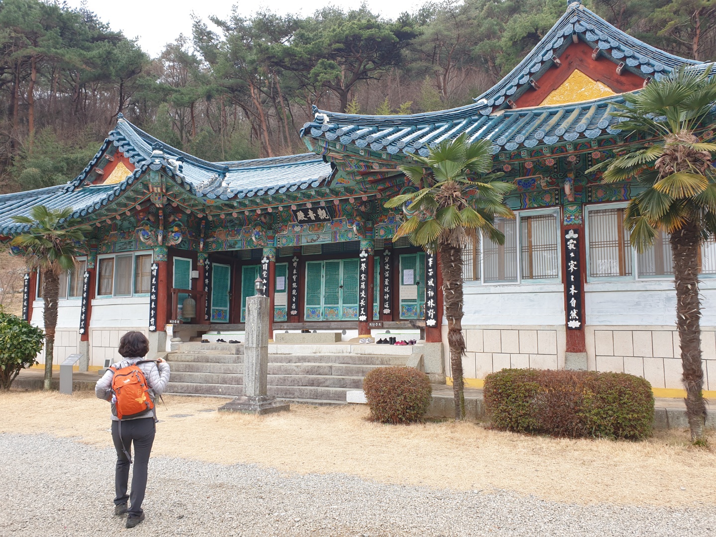 조금 오르니 아주 멋진 소나무 숲과 함께 곧 비구니 스님의 불경 외는 소리가 우리를 이끌었는데, 조정순 기진맥진 회장님께서 관음사에 들러 마산Y와 기진맥진의 안녕을 기원하셨죠. 처음엔 완만한 오르막이었는데, 정상 부근으로 갈수록 경사가 급한 힘든 바위 길이 나타났는데, 박수연, 조정순 회원님의 가볍게 오르시는 모습에 감탄을 금할 수 없었고, 학봉산악회 멤버 답게 신삼호, 정규식 회원님도 가뿐하게 정상을 향했습니다.