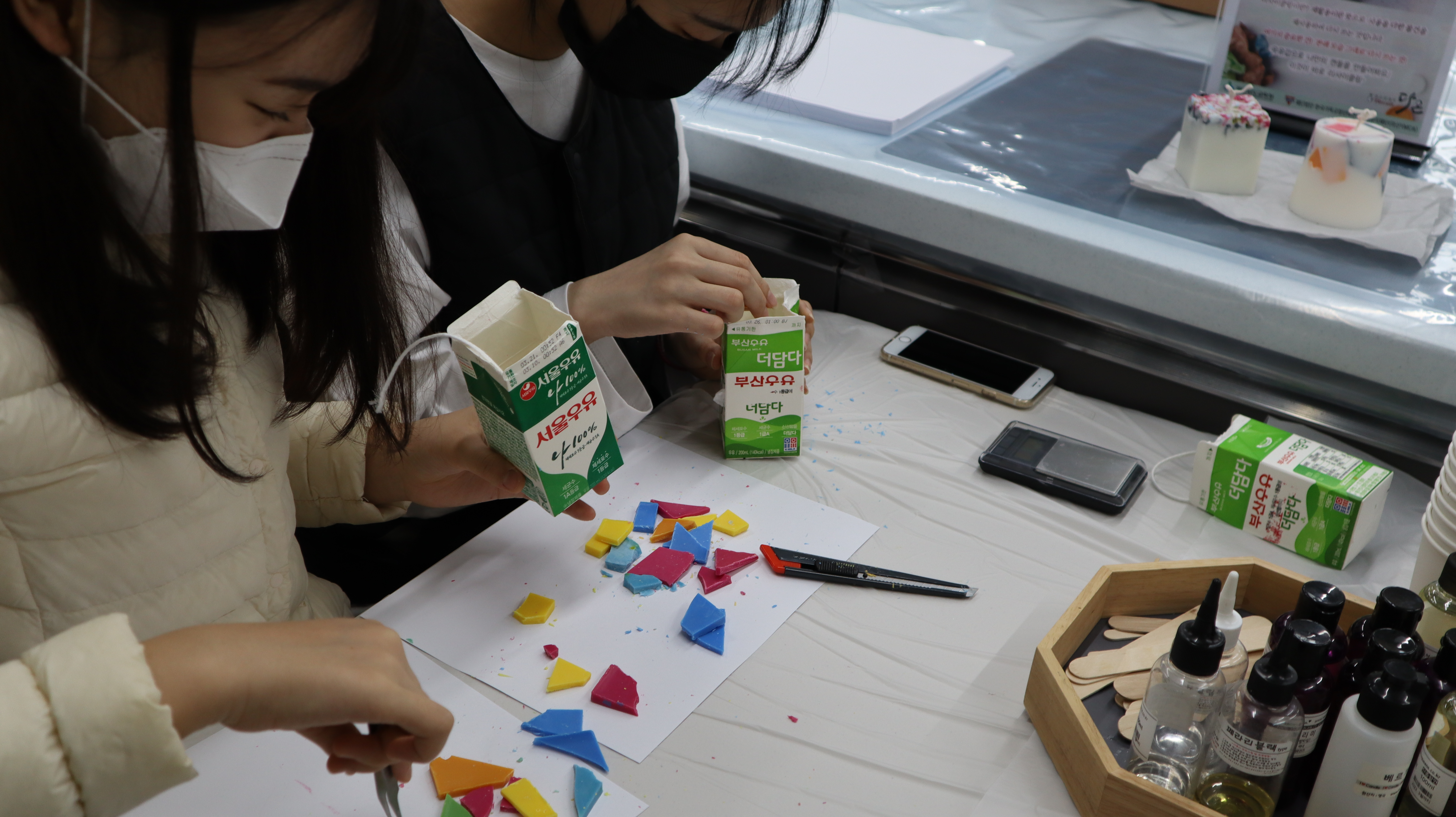 환경부스 2) 리사이클링, 우유갑으로 캔들만들기