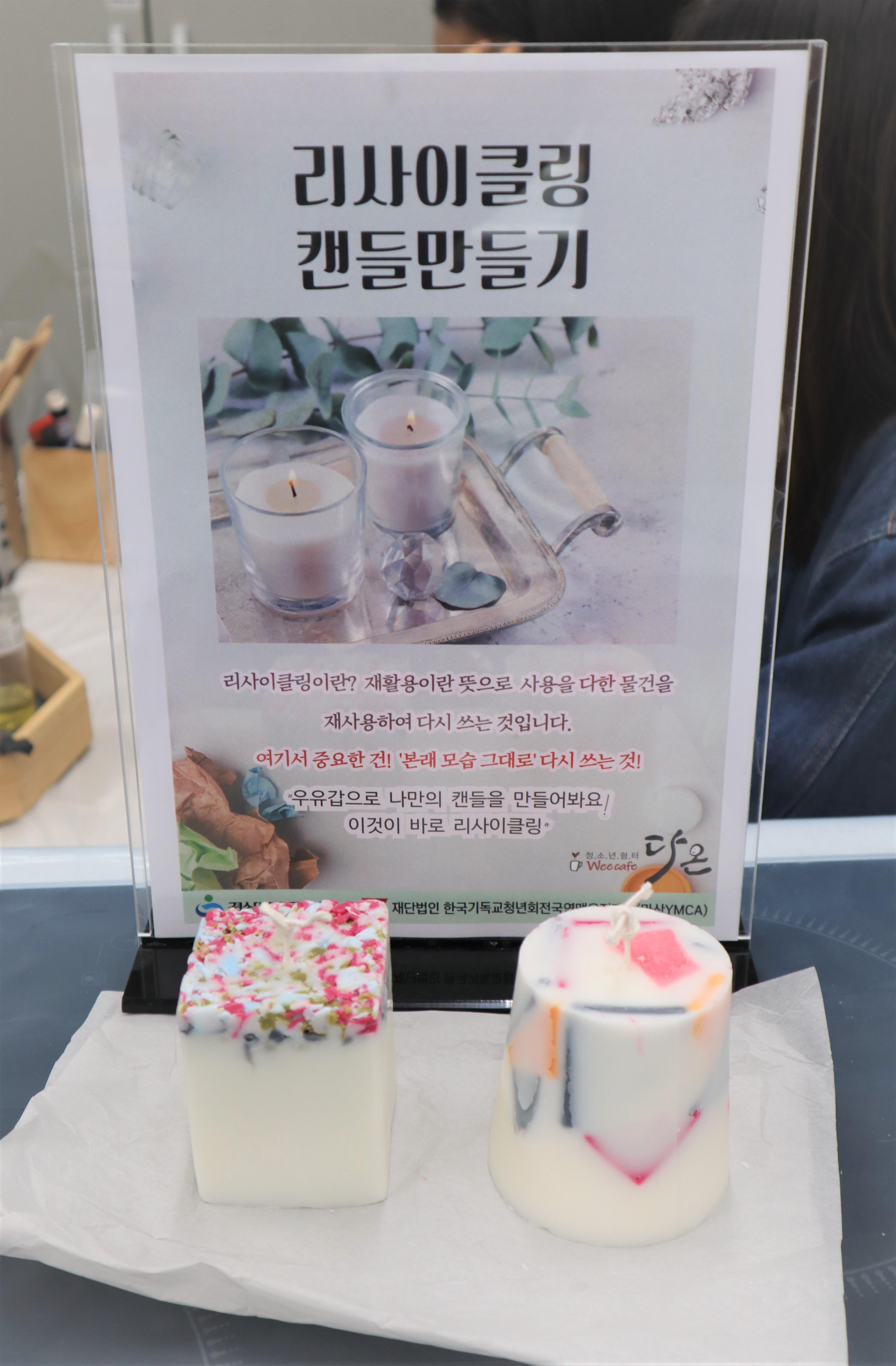 직접 만든 리사이클링 캔들의 완성작을 보며 뿌듯해했답니다.