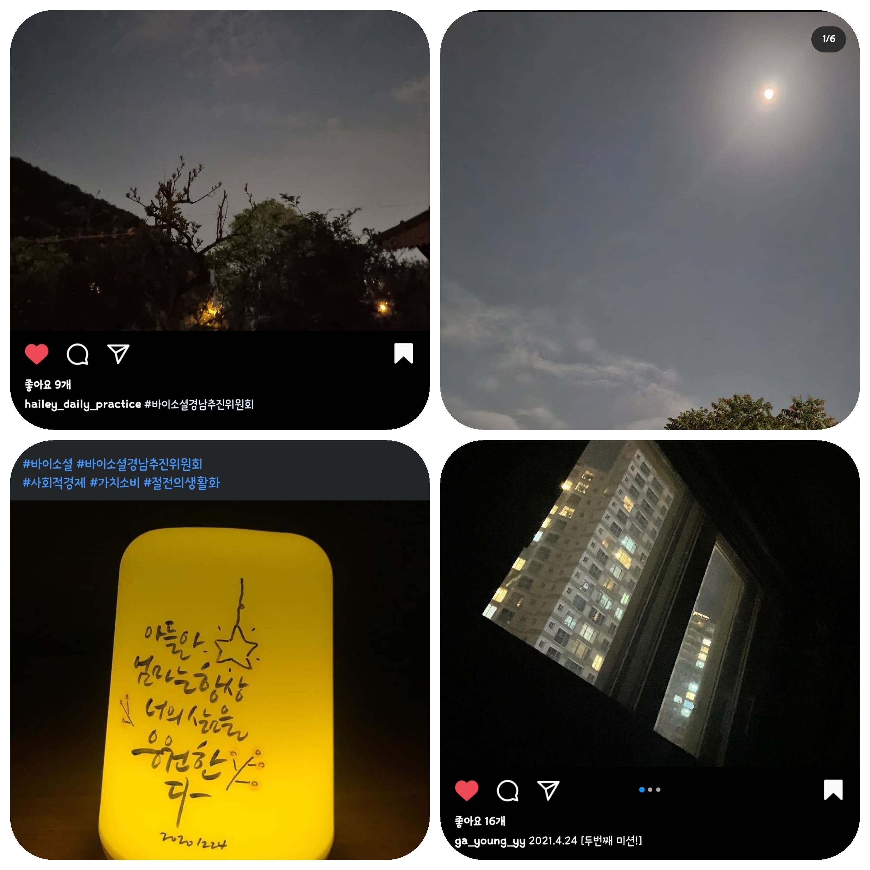 그날 미션을 실천해서 기후위기를 꺼주시면 바이소셜이 짠 하고 켜지도록