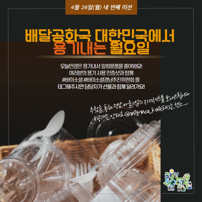 오늘은 용기내는 이벤트를 진행했어요. 배달쓰레기 없는 용기내기!