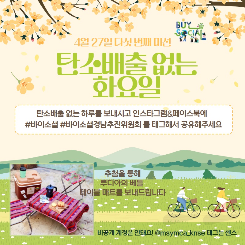 탄소배출 없는 화요일은 처음 준비할 때 '자동차 타지 않기' 로 준비했었는데요.