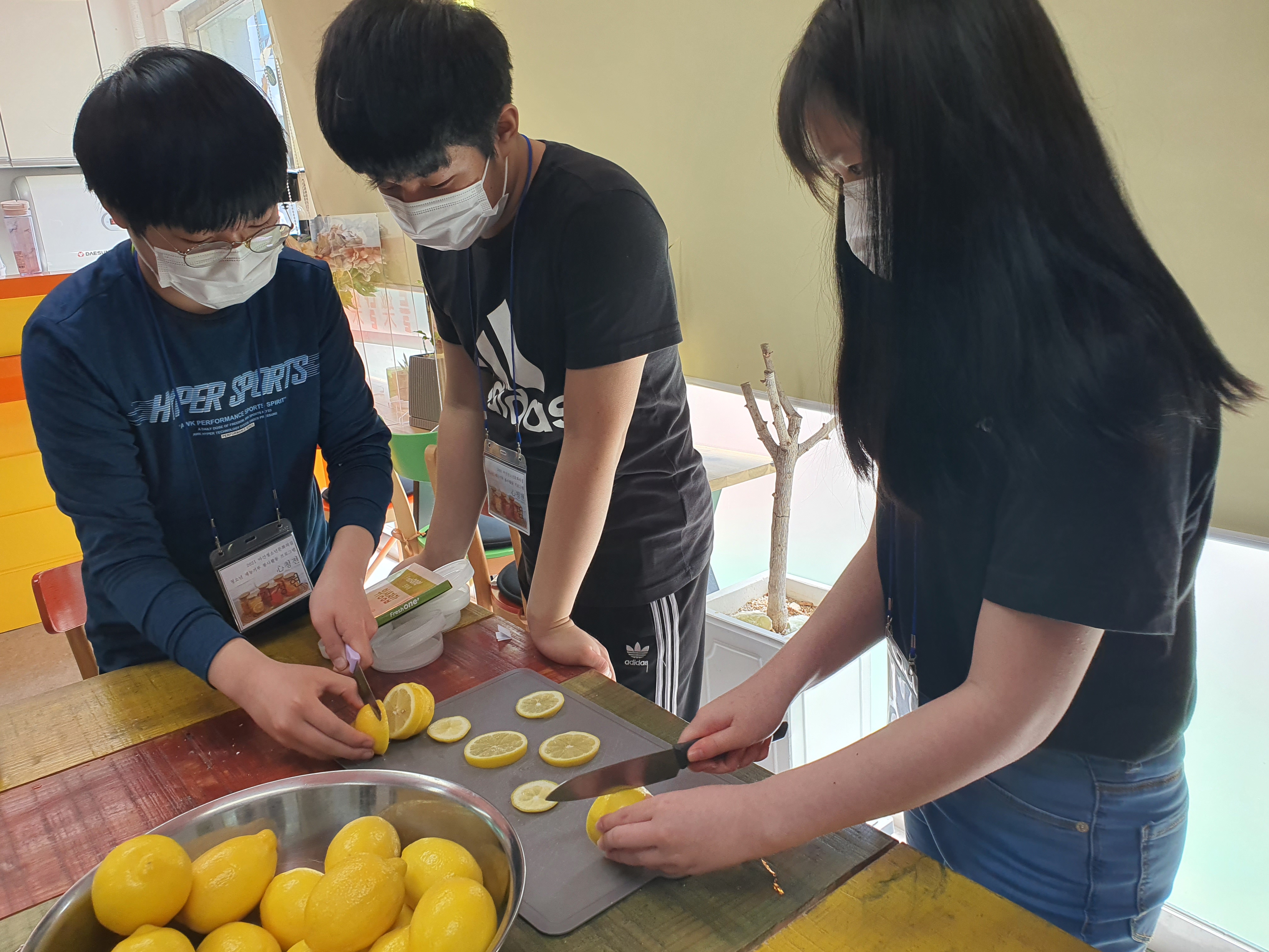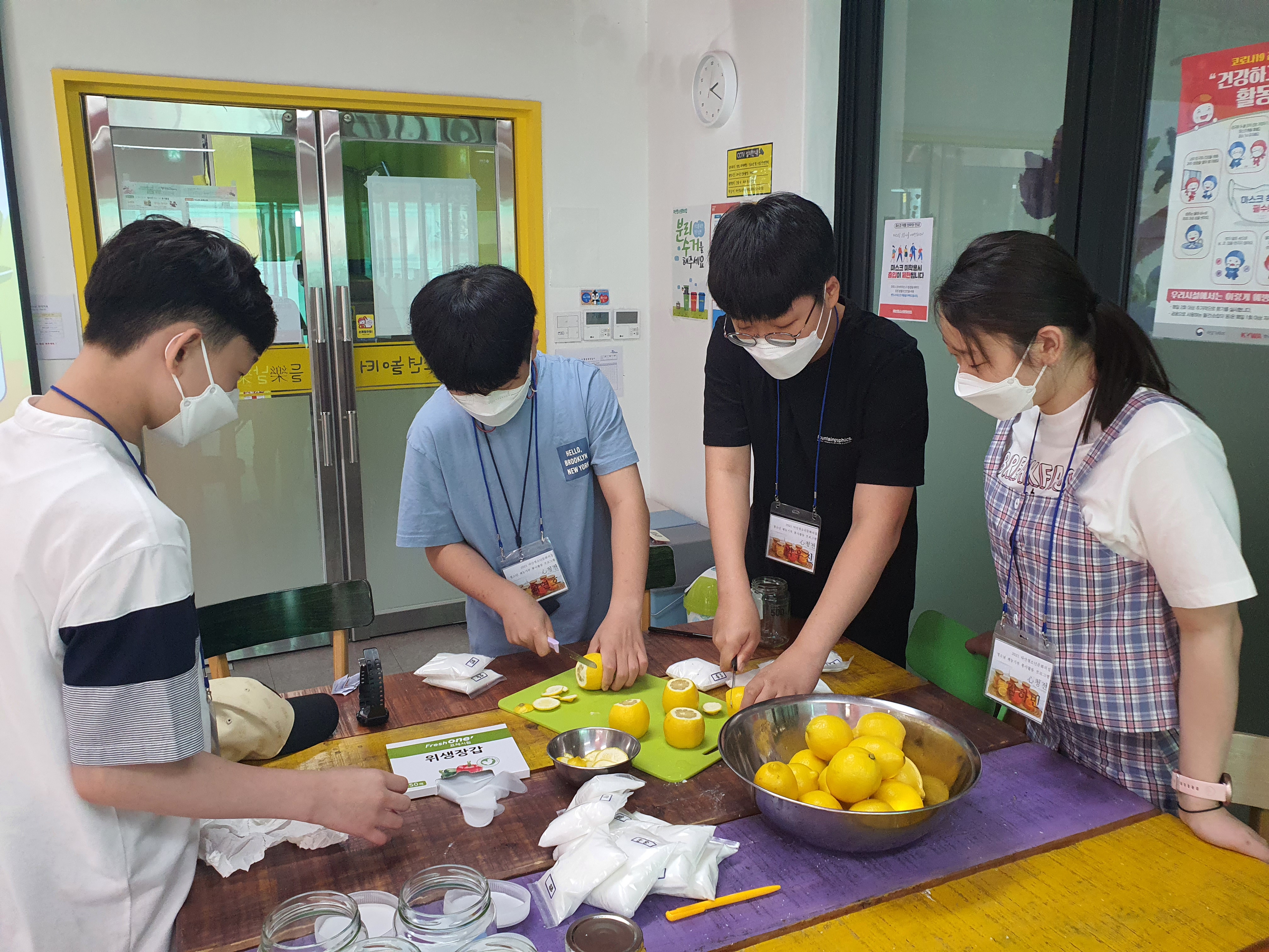 청소년들은 새콤달콤 레몬청 만드는 법을 배우고 직접 만들어보는 활동을 하였답니다 :)