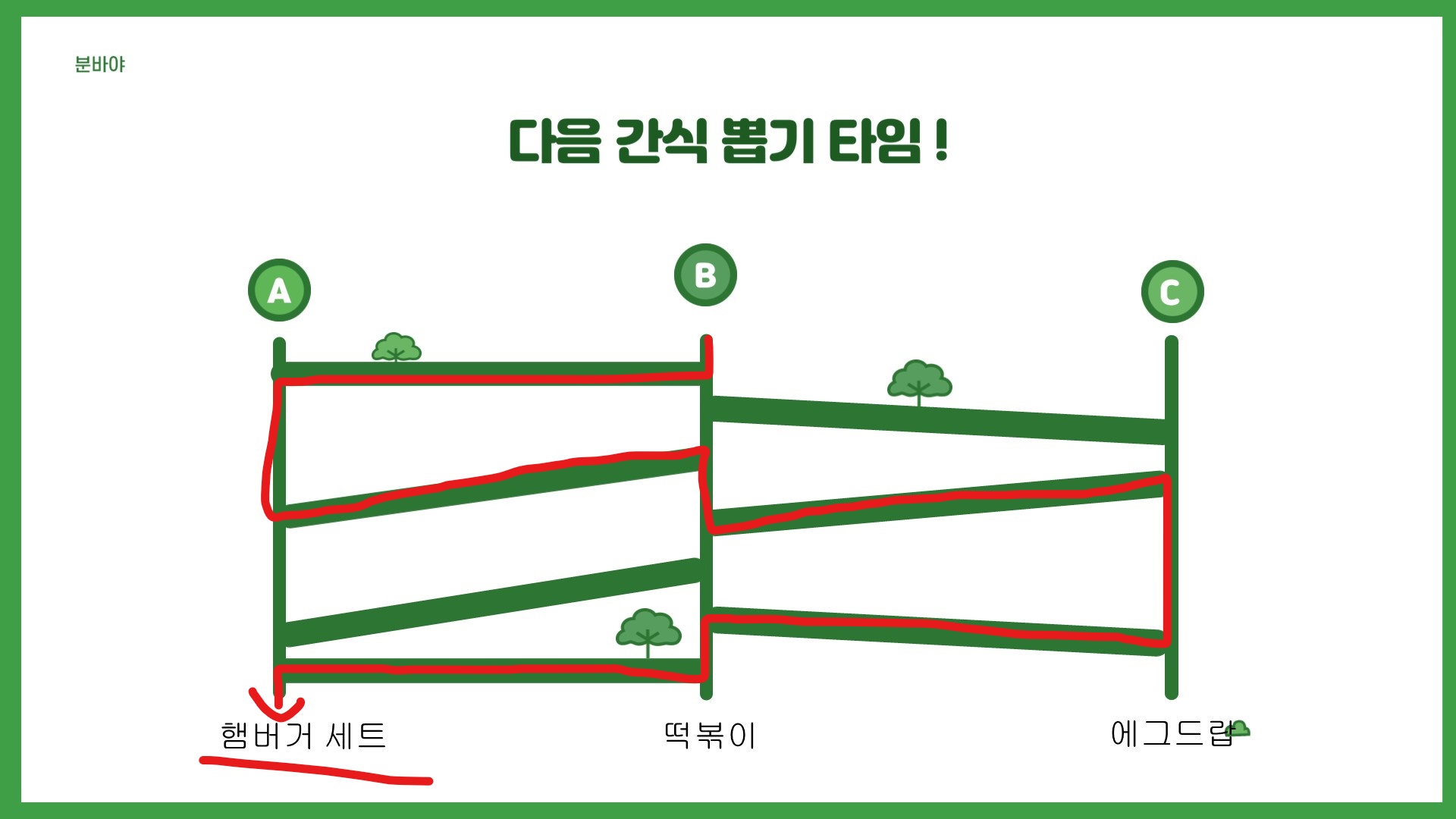 사다리 게임을 통해 뽑힌 간식은 다음 회기에 먹을 간식으로