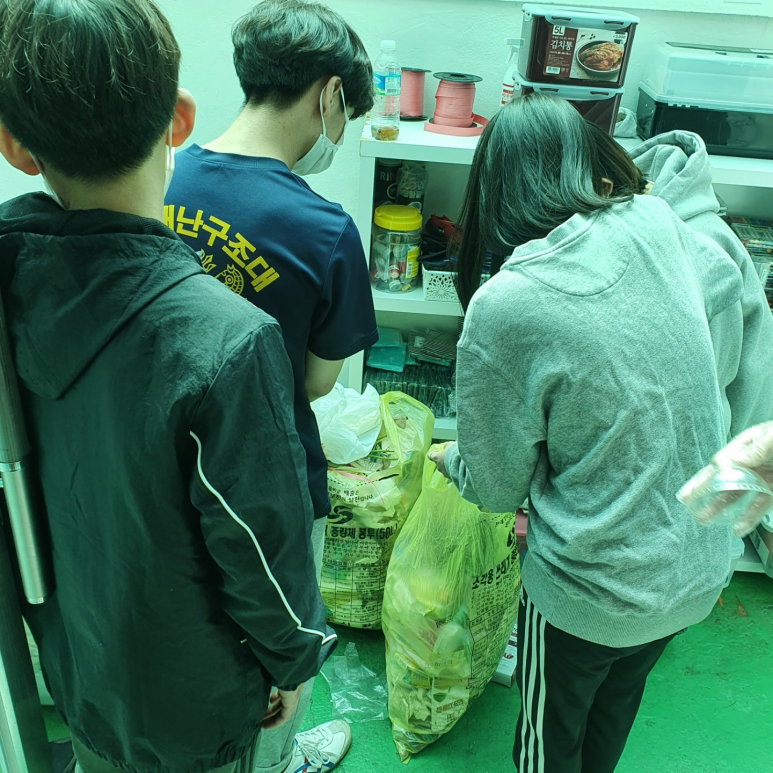 주운 쓰레기들을 마산청소년문화의집에 도착하여 분리배출을 하였습니다.