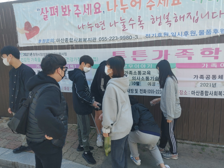 나눔이들은 마산청소년문화의집에서 만날재까지 가는 길에 버려져 있는 쓰레기들을 열심히 주웠습니다.