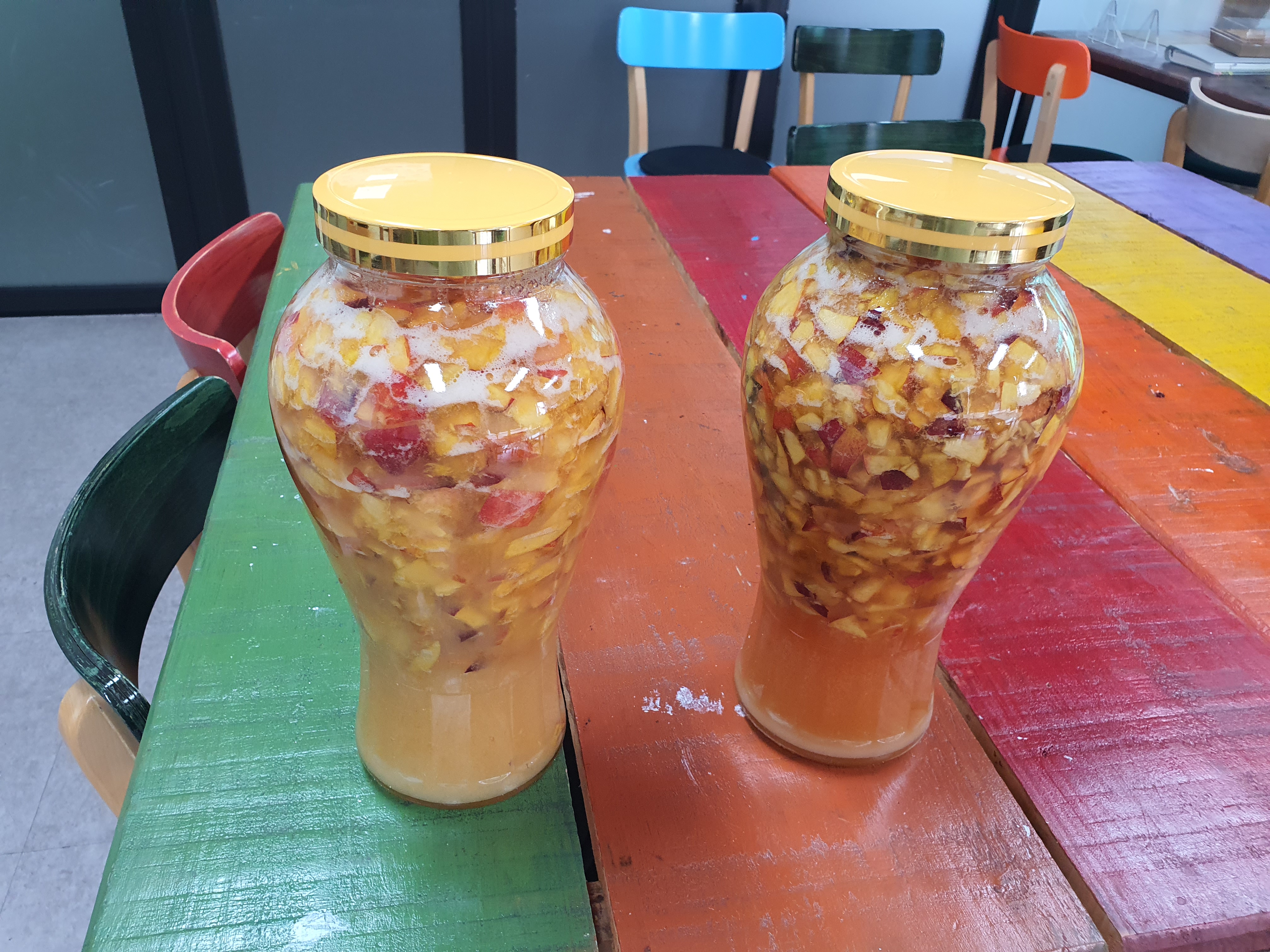 청소년들이 직접 만든 천도복숭아청이 숙성되어