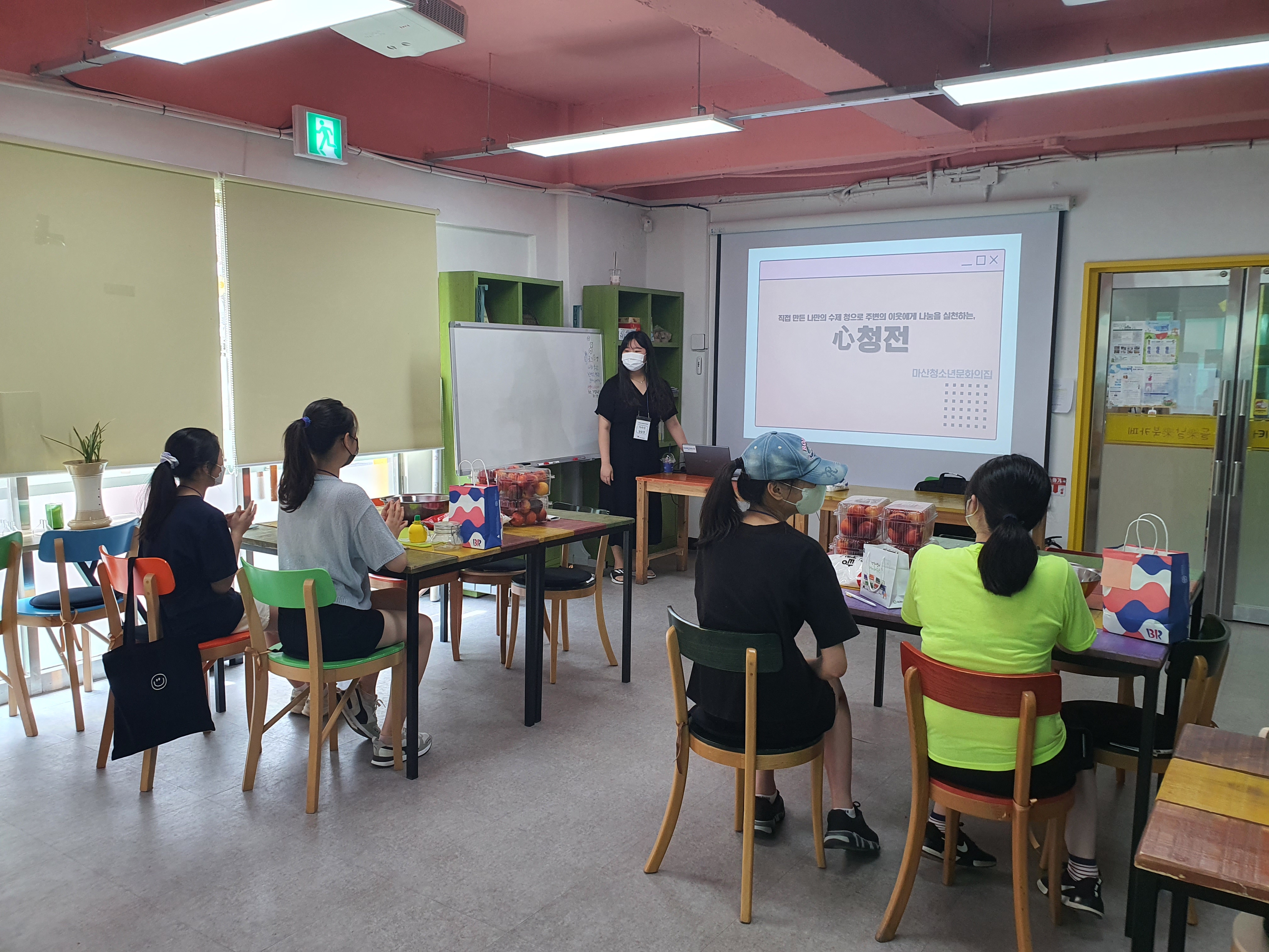 心청전은 청소년들이 직접 수제청을 만들어보고, 만든 수제청을 지역주민들에게 전달하는 프로그램입니다.
