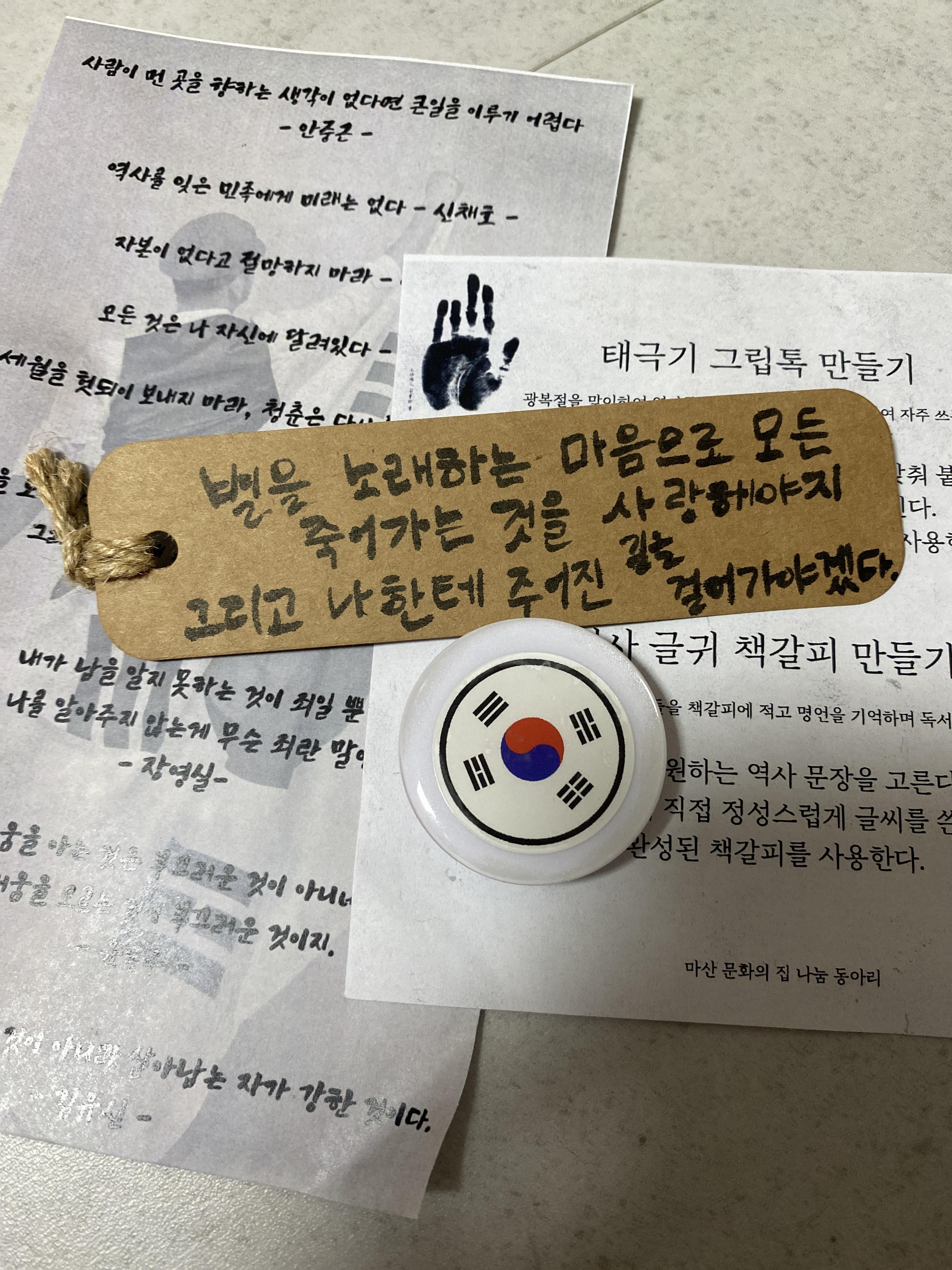 -태극기 그립톡과 나만의 역사 글귀책갈피를 만들었는데,