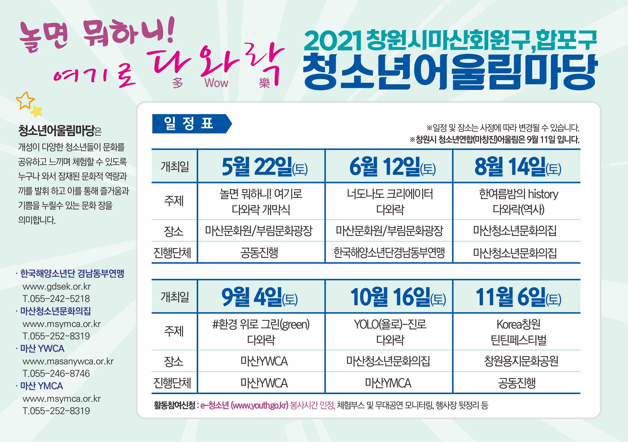 9월 4일(토) 마산YWCA에서 진행될 예정입니다!