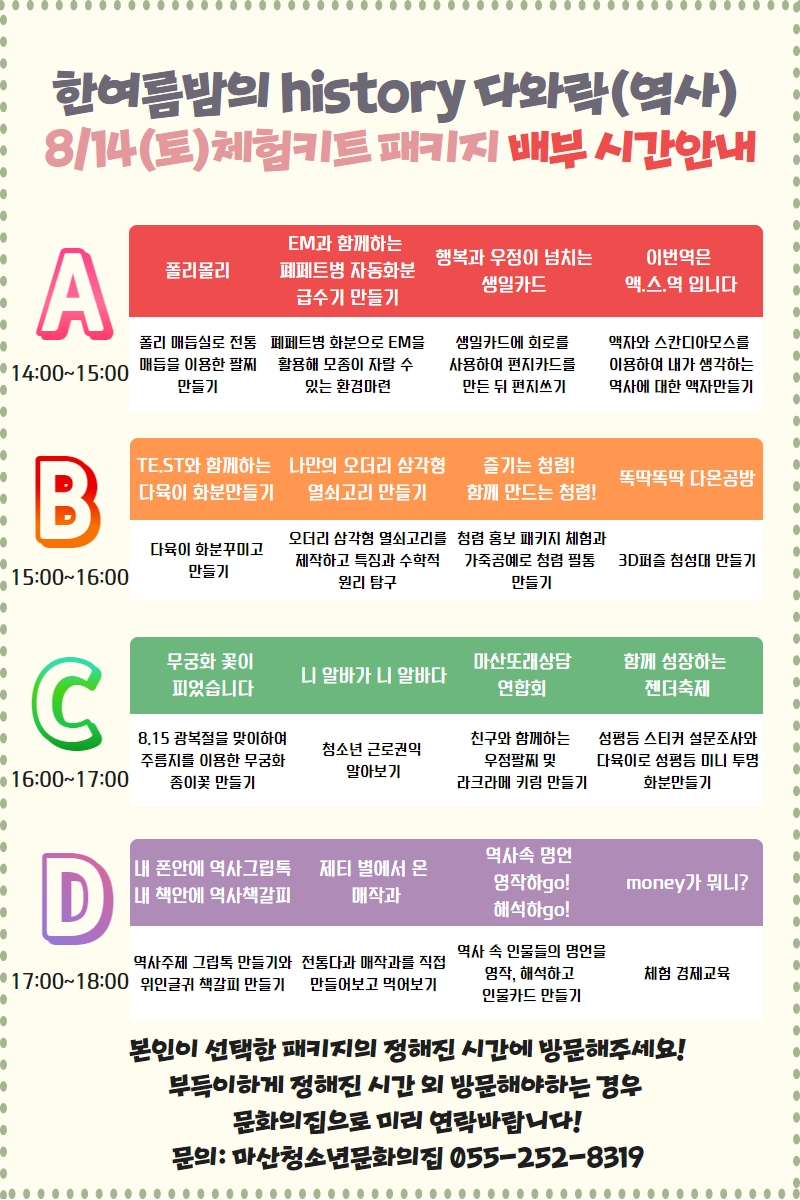 8월 14일 토요일, 창원시청소년어울림마당(마산합포구,회원구) '한여름밤의 history 다와락'이