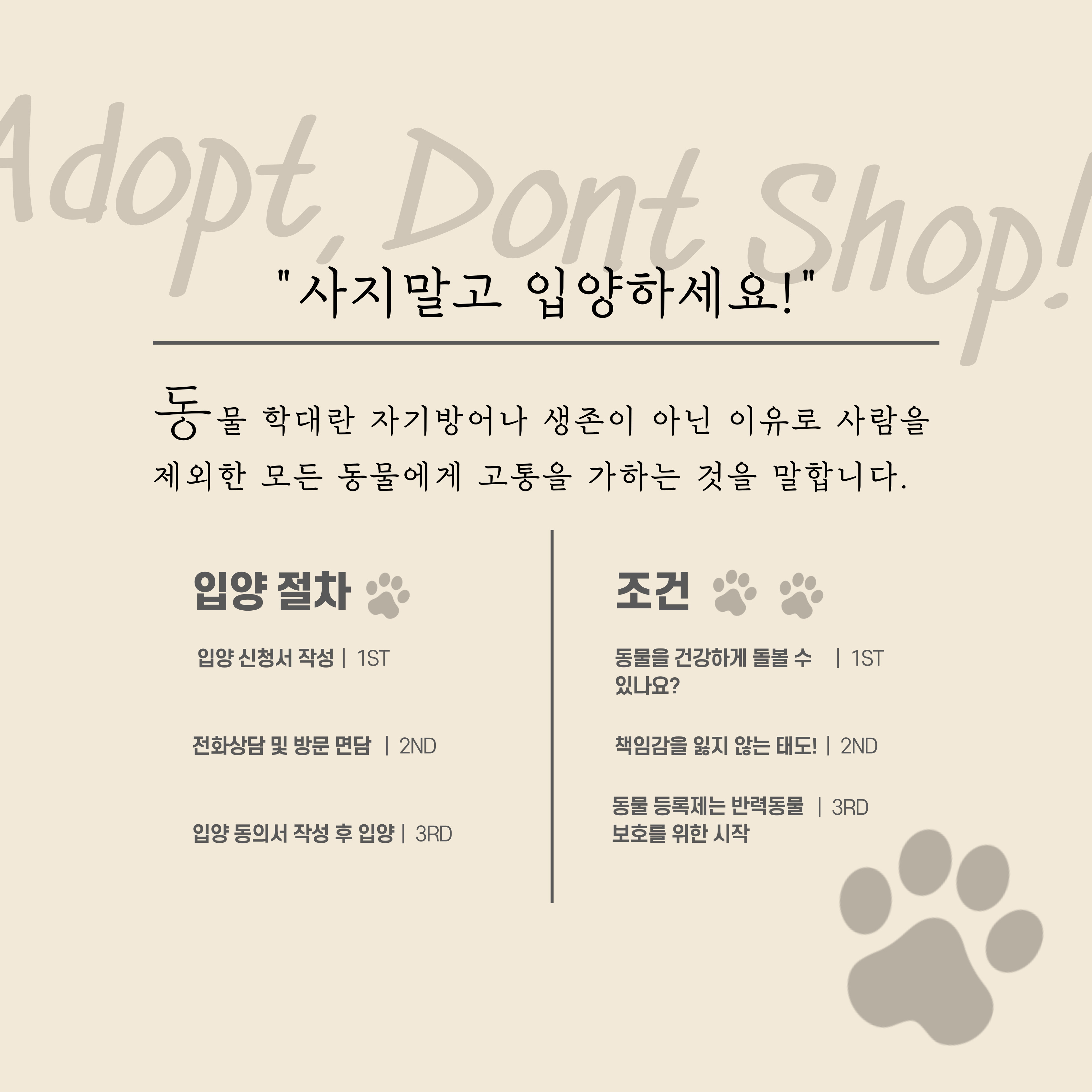 반려동물을 사랑하고 아껴주며 버려지는 동물들이 없어지길, 동물을 학대하는 잔인한 행위가 사라지길,