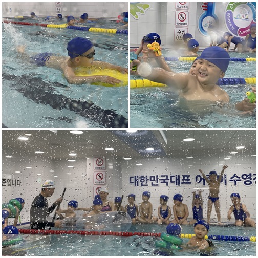 그중 힘들었던 수영 수업도 올해는 사설 수영장을 이용해 진행 중에 있습니다. 시에서 운영하는 공공시설은 단체 수영을 받지 않아 작년 한 해는 수영을 쉴 수밖에 없었습니다. 물론 밧줄놀이를 추가하여 진행하긴 하였지만, 아쉬워하시는 부모님들도 계셨지요.