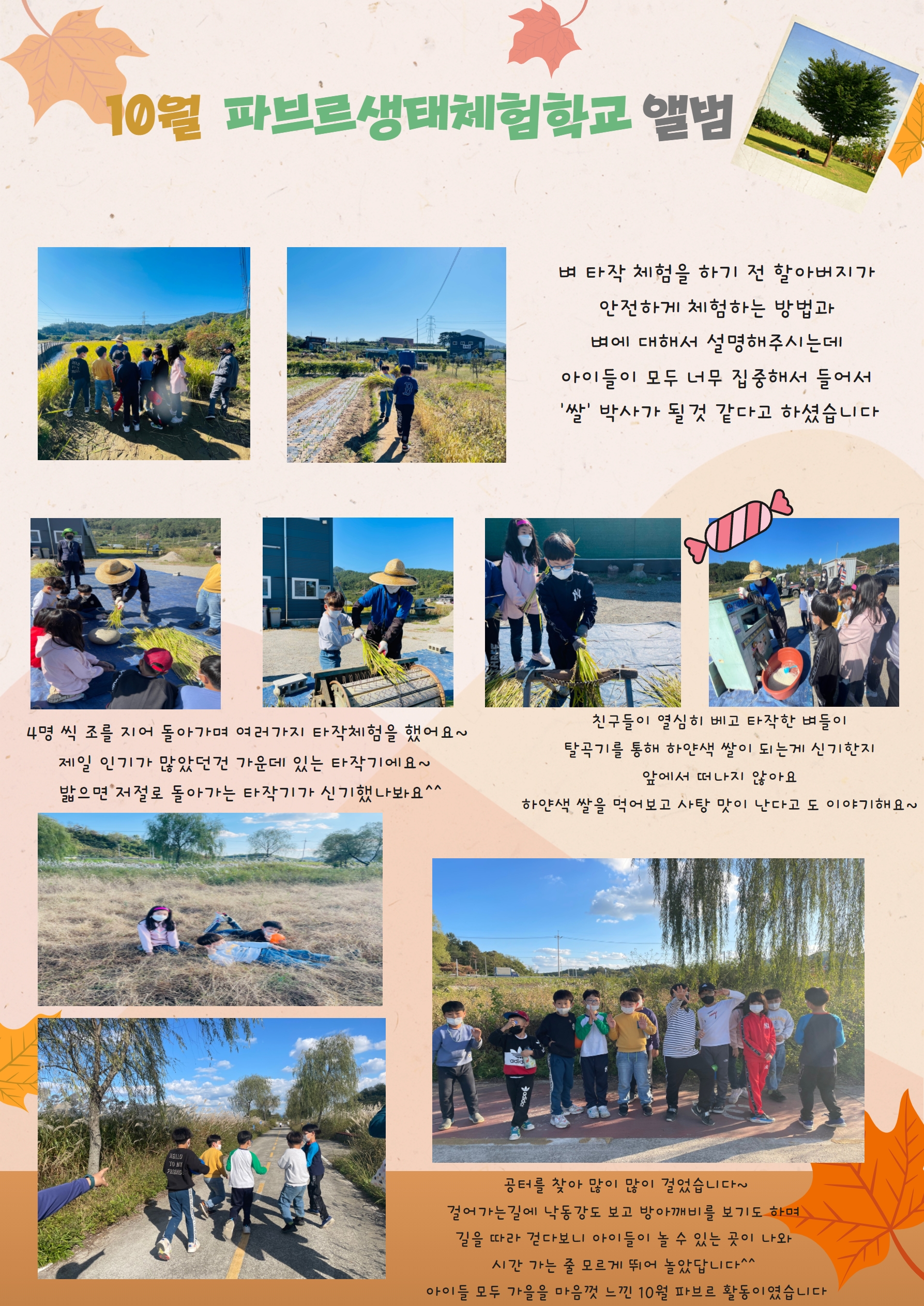 날씨가 파브르 친구들을 도와주는 것처럼 완벽한 가을 하늘 아래 행복한 활동으로 10월을 마무리했습니다^^