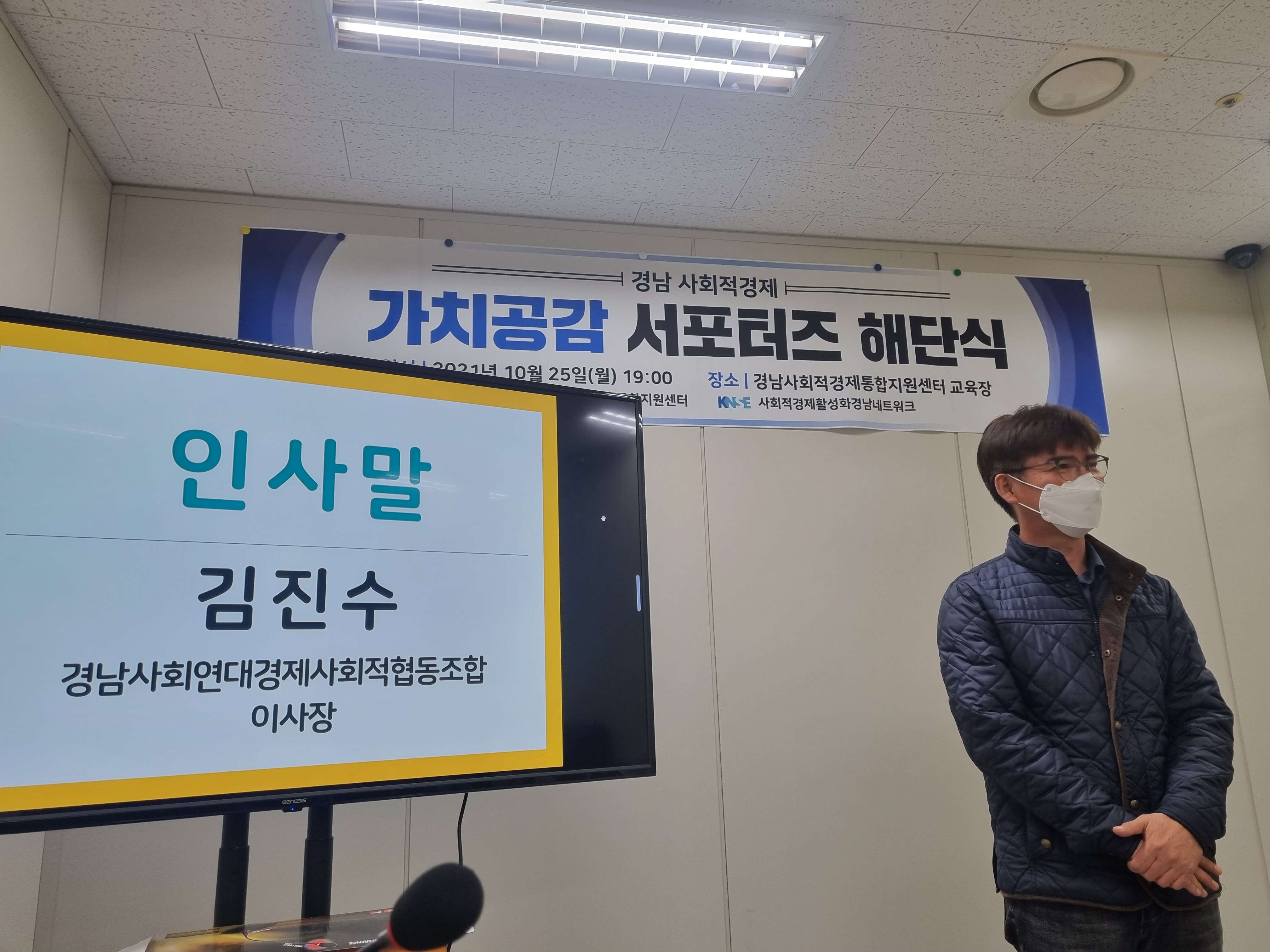 경남사회연대경제사회적협동조합의 김진수이사장님께서 서포터즈들에게 고생많으셨다고 인사해주시고, 사회적경제가 활성화 되어야 하는 사회의 흐름들에 대한 말씀도 해주셨어요.