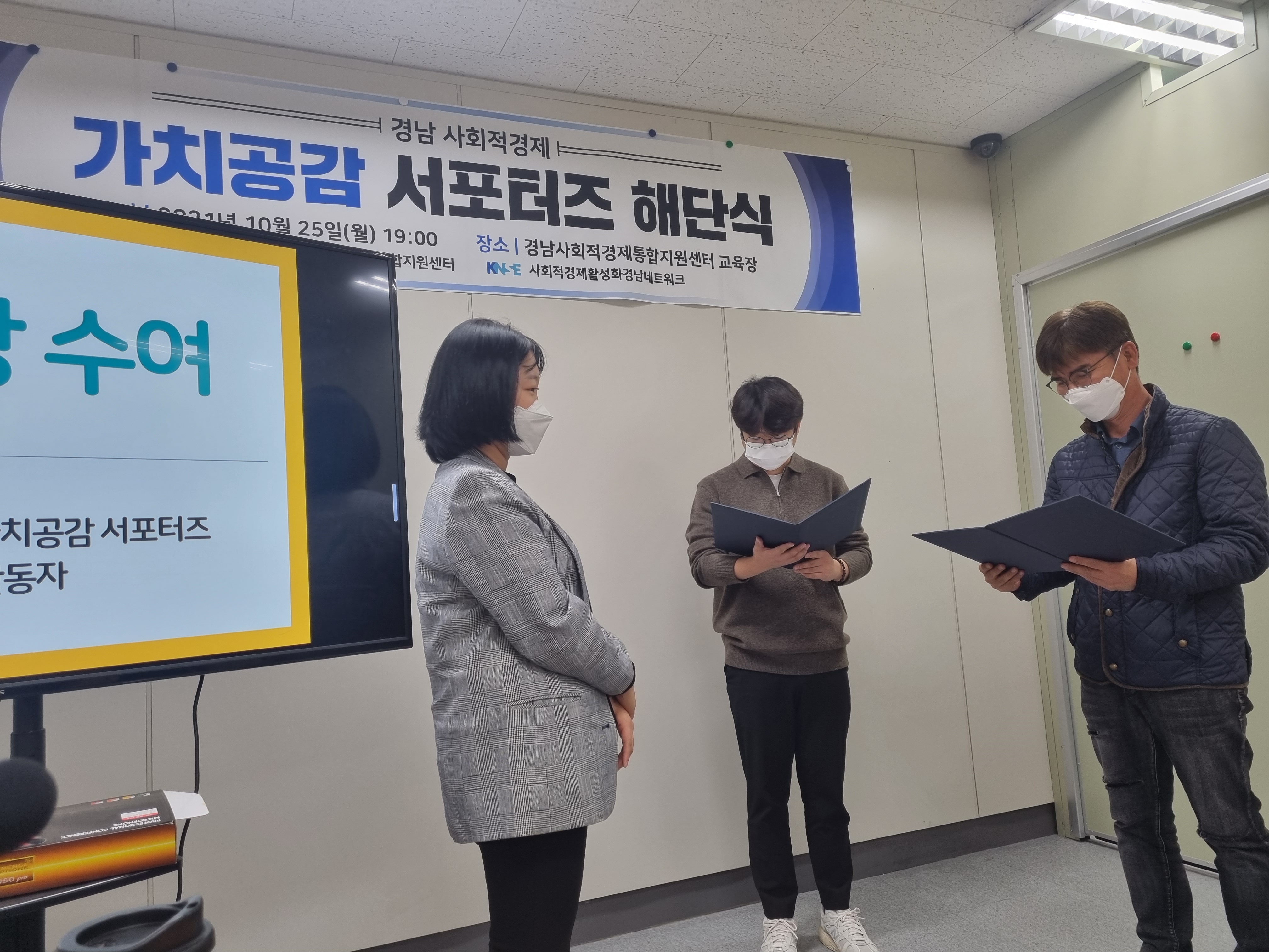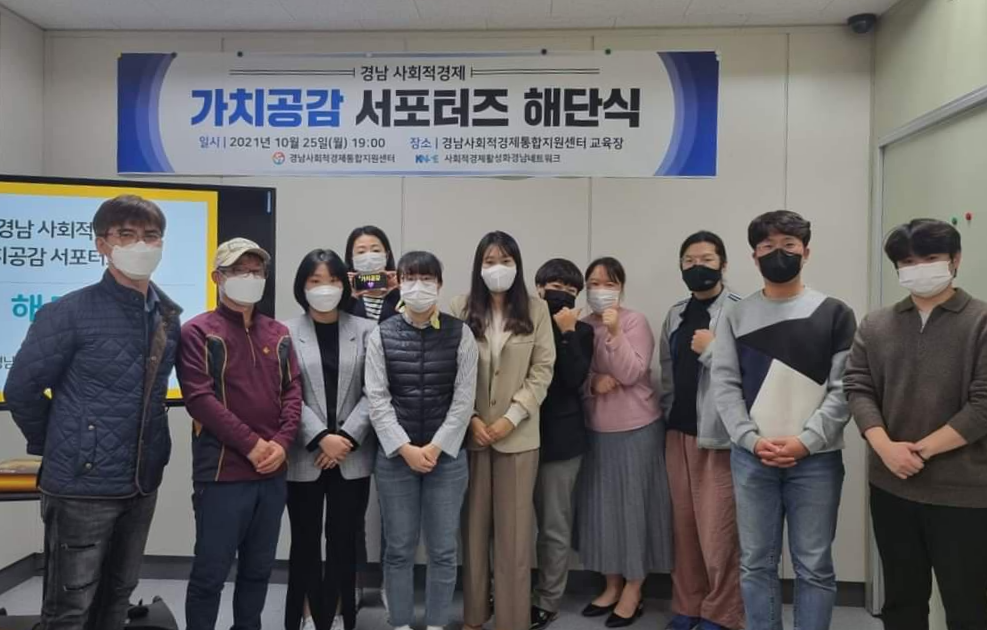 경남사회적경제통합지원센터 교육장에서는 올 하반기 활동안 가치공감 서포터즈 해단식이 있었습니다.