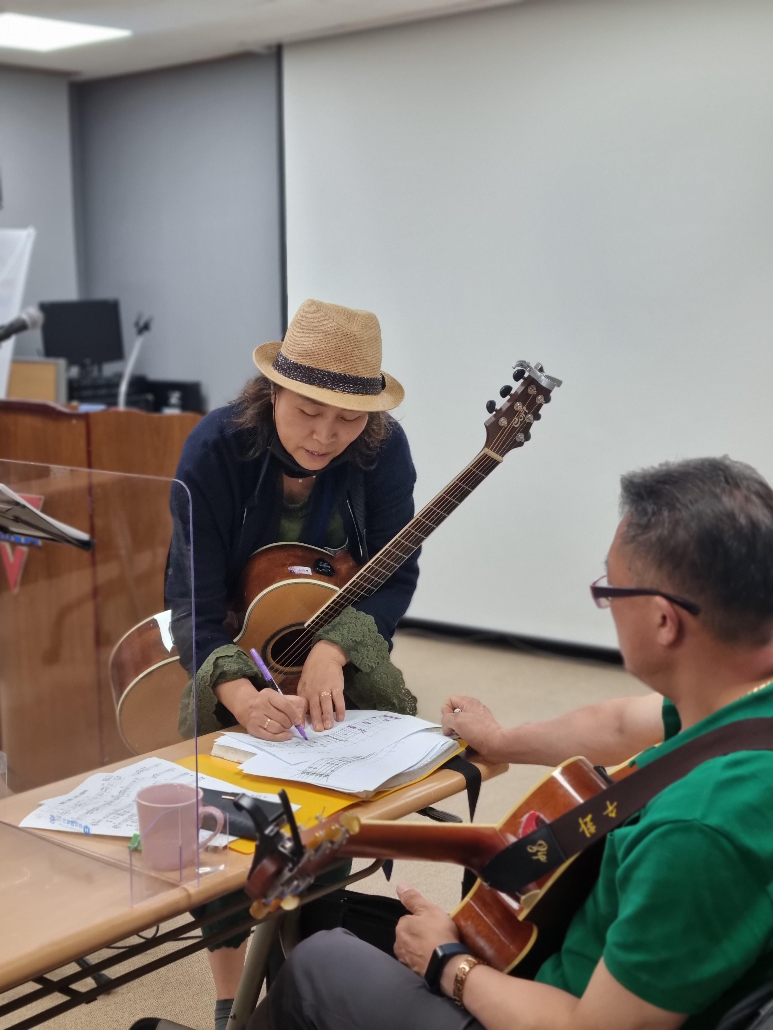 스트로크나 아르페지오 등 기타 주법 관련한 내용과 함께 단체곡을 부를 때의 팁이나 솔로 연주를 위한 화성악 등 평소에 배우기 어려운 내용들도 많이 알려주셨답니다.