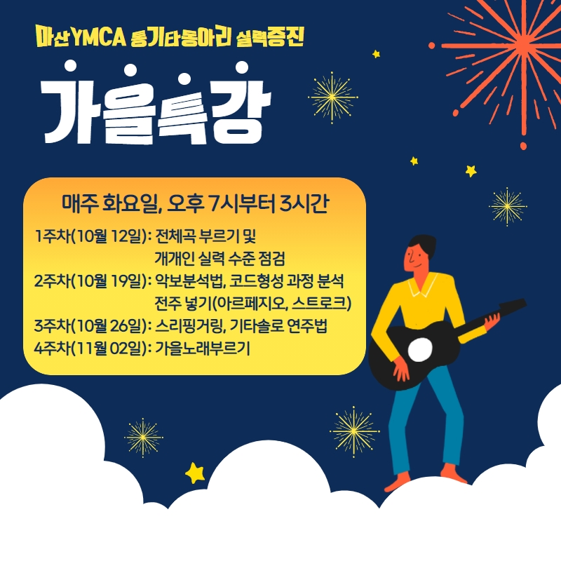 마산YMCA 통기타동아리 '마산Y통'은 가을을 맞아 실력증진 기타 특강을 진행했어요.