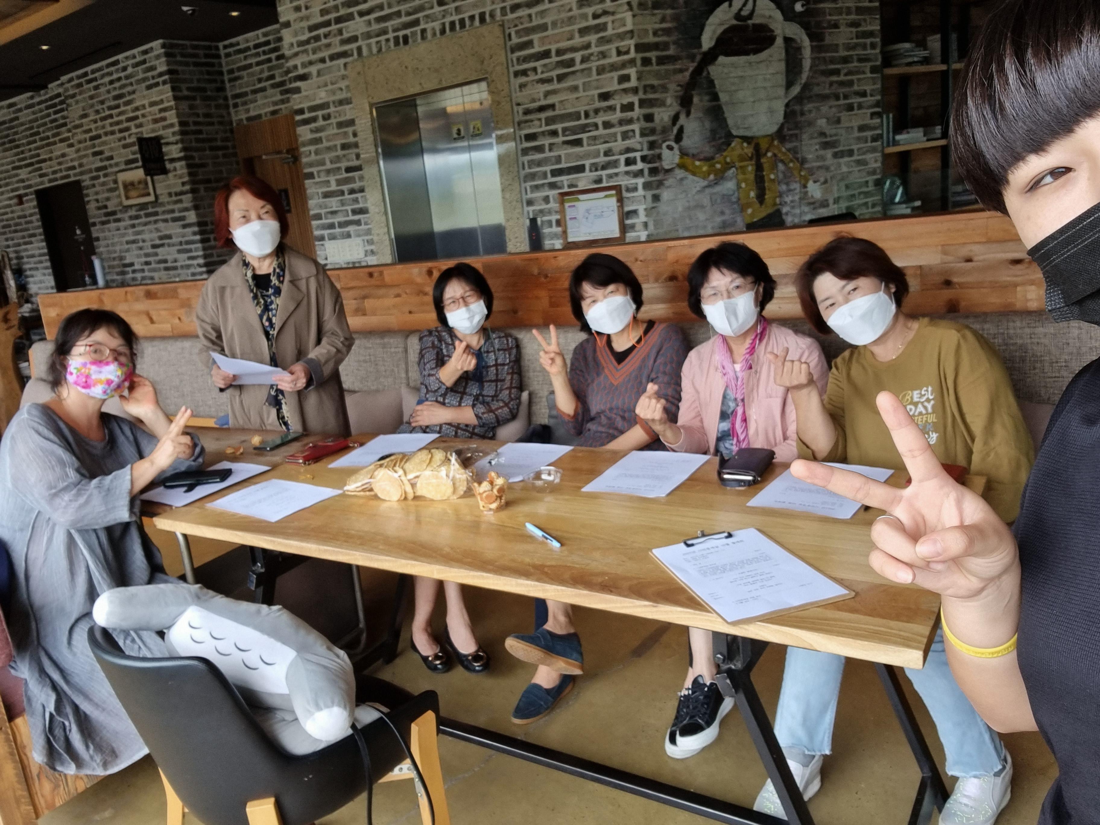 주남저수지가 한 눈에 보이는 카페에서 10월 월례회를 진행했어요.