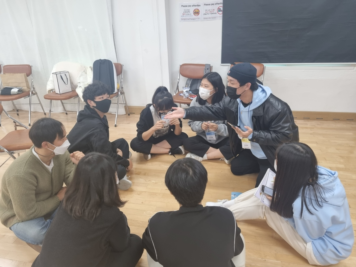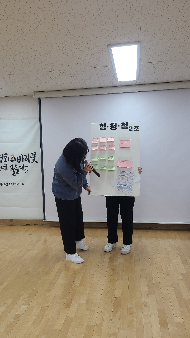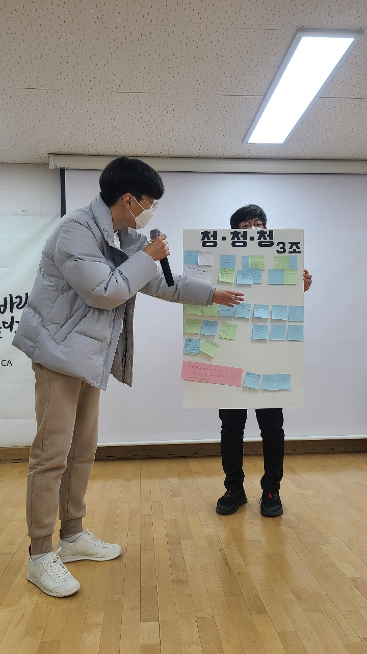 한바탕 신나게 놀고 난 뒤, 들떠있는 마음을 진정시킨 후 '청청청 꿈 마당'을 진행한 이유인 청소년 문화와 꿈에 대한 토론을 진행하였습니다! 참여위 위원들이 각 조에 속하여 토론을 진행했습니다!