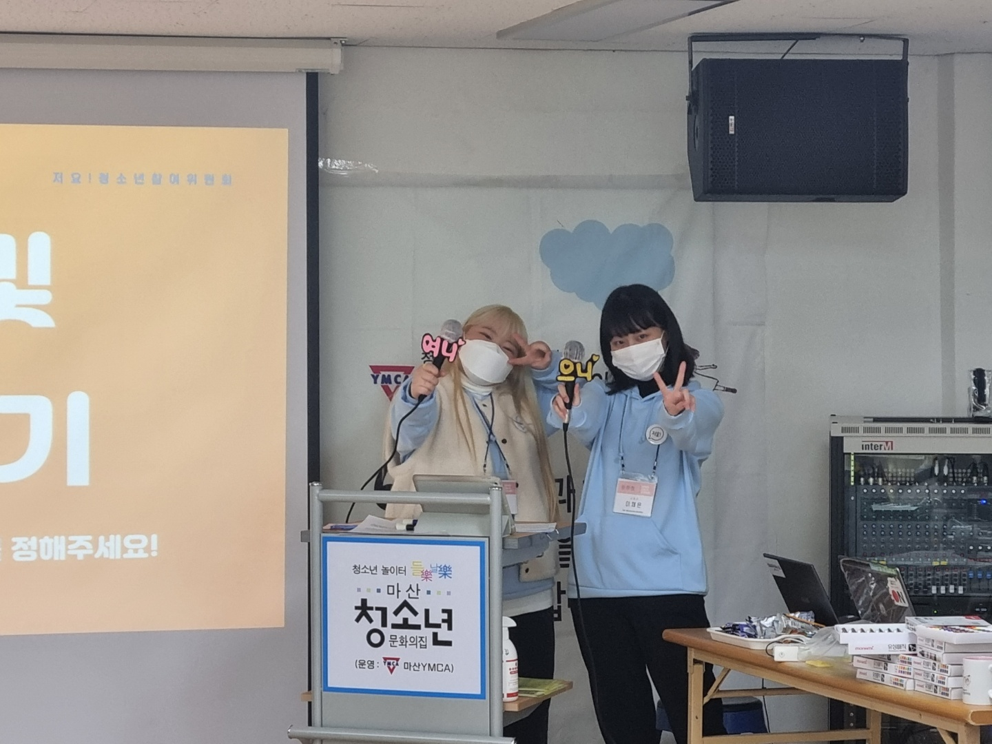 '청청청 꿈 마당'의 시작은 약 한 달간 열심히 준비한 '저요!창원시(마산)청소년참여위원회' 소속인 사회자 "으니" "여니"의 오프닝 멘트로 시작되었습니다!