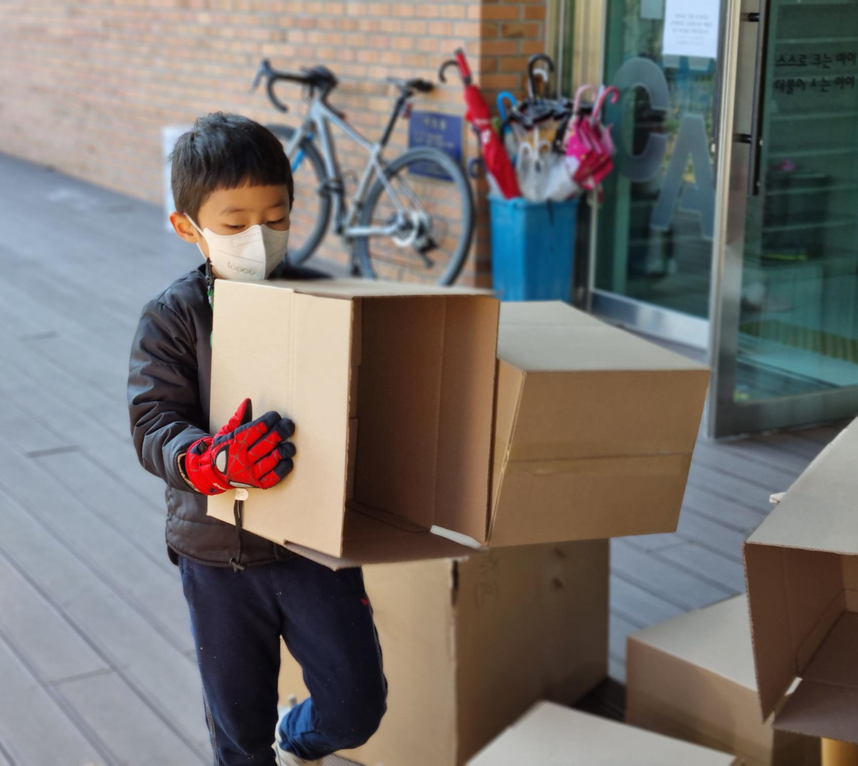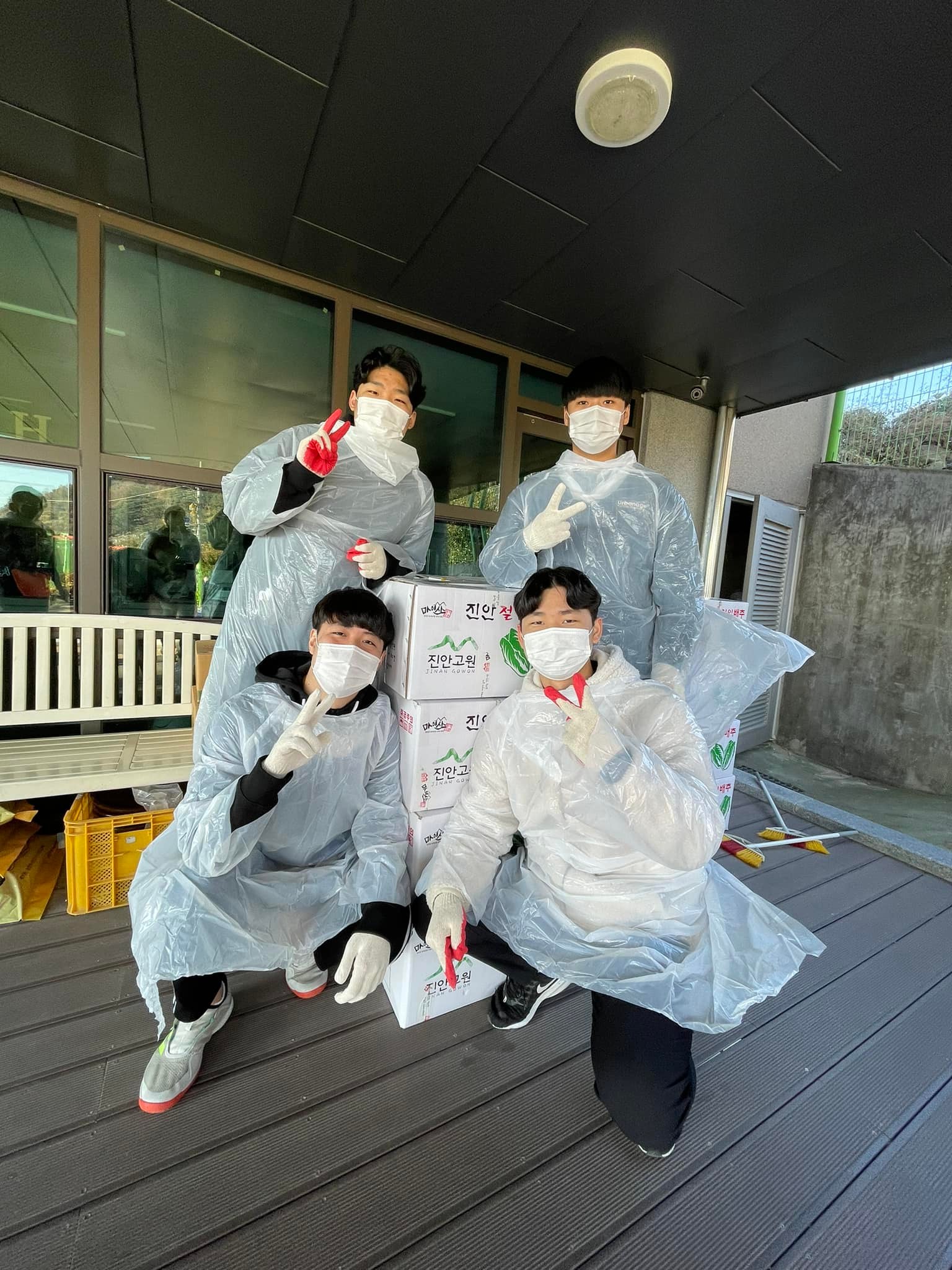 작년에 이어 진안YMCA에서 완제품 김치 600포기를 주문해 160세대 배부처에 맞게 소포장하는 작업을 진행했습니다. 다행히 올해도 국제와이즈멘 가고파·새마산클럽, (주)동원개발, 경남에너지의 든든한 후원과 회원들의 따뜻한 손길이 더해졌기에 가능했습니다. 또한 현재 7세 단원뿐만 아니라 내년이면 20살이 되는 졸업생 단원 4인방이 뭉처 김치박스도 척척 옮기고 아기스포츠단에서도 큰 역할을 해주었습니다.