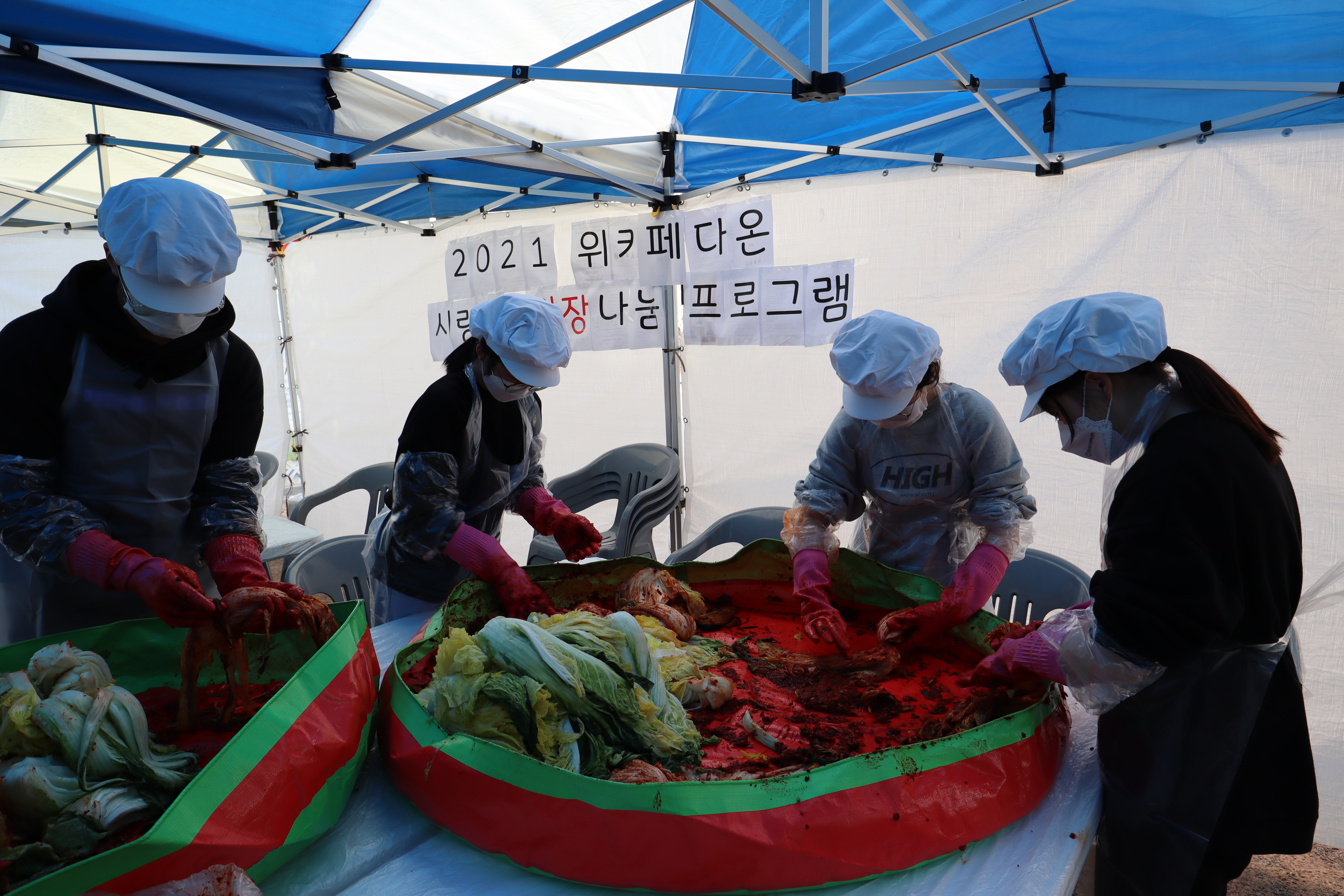 김치를 만들면서 한 번, 다 만든 김치를 어르신들에게 나누어 주며 한 번,