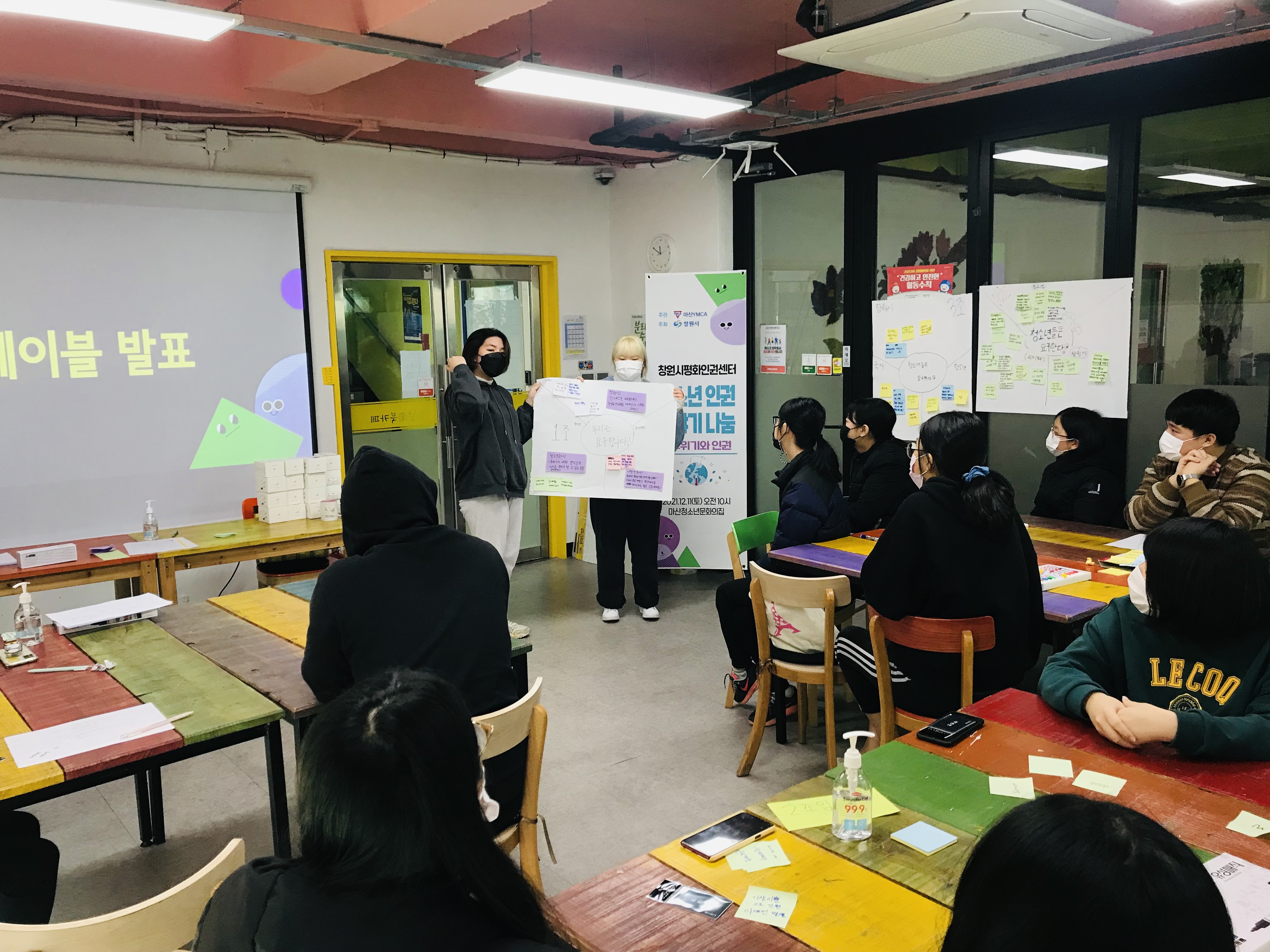 기후위기와 인권을 주제로 지난 12월 11일(토) 오전 10시 마산청소년문화의집에서 청소년 인권 이야기나눔이 진행되었습니다. 이야기나눔 전 '2022년 창원시 청소년인권실태조사' 결과를 공유하는 시간을 가졌습니다. 지난 2018년 조사에 비해 달라진 점을 알아보고 궁금한 점, 기억에 남는 점 등 조사 결과와 관련된 이야기를 나누기도 했습니다.