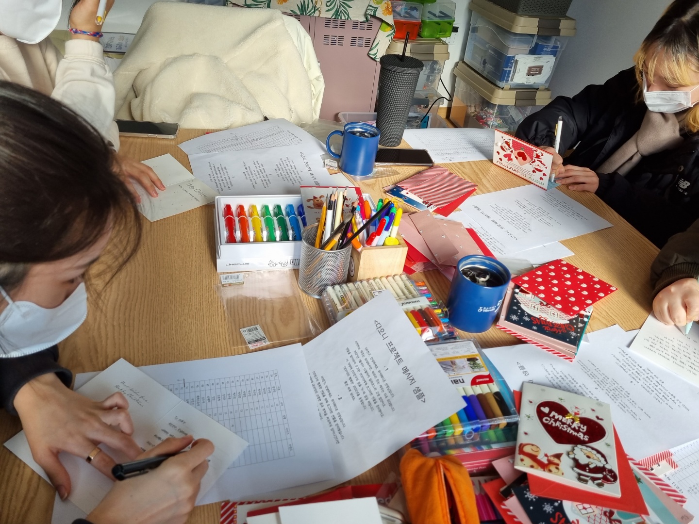특별히 2차 지원의 손 편지 작업은 다온의 그리다 봉사자들과 함께하며 따듯한 인사와 지지의 메시지 외에도 여러 가지 색연필과 반착이 풀로 편지를 가꾸어 편지를 받아볼 친구들이 최대한 행복함을 느낄 수 있도록 정성을 다해 준비했습니다.