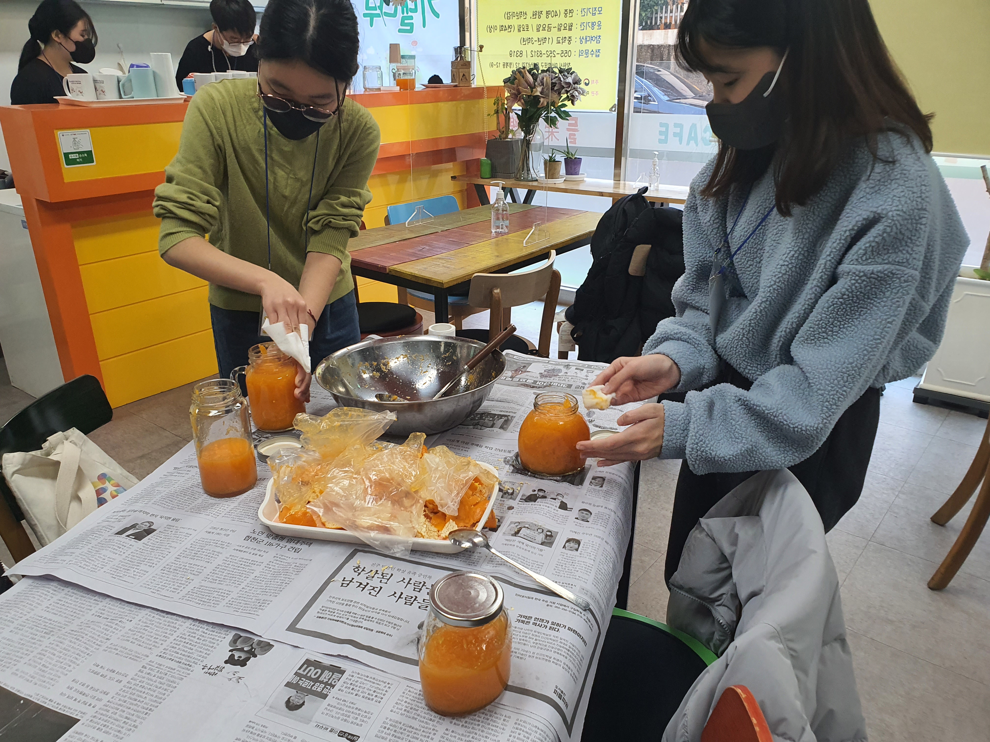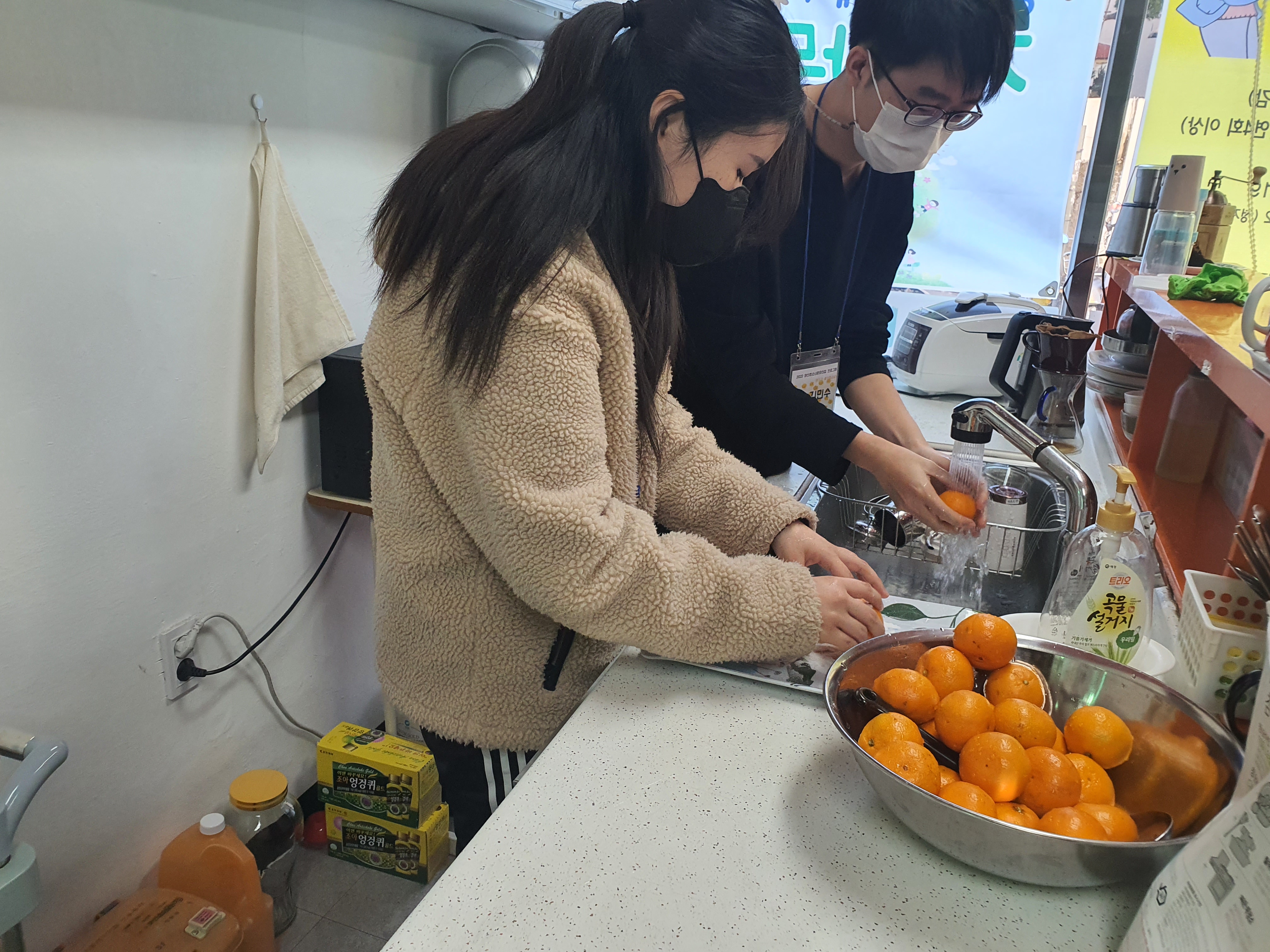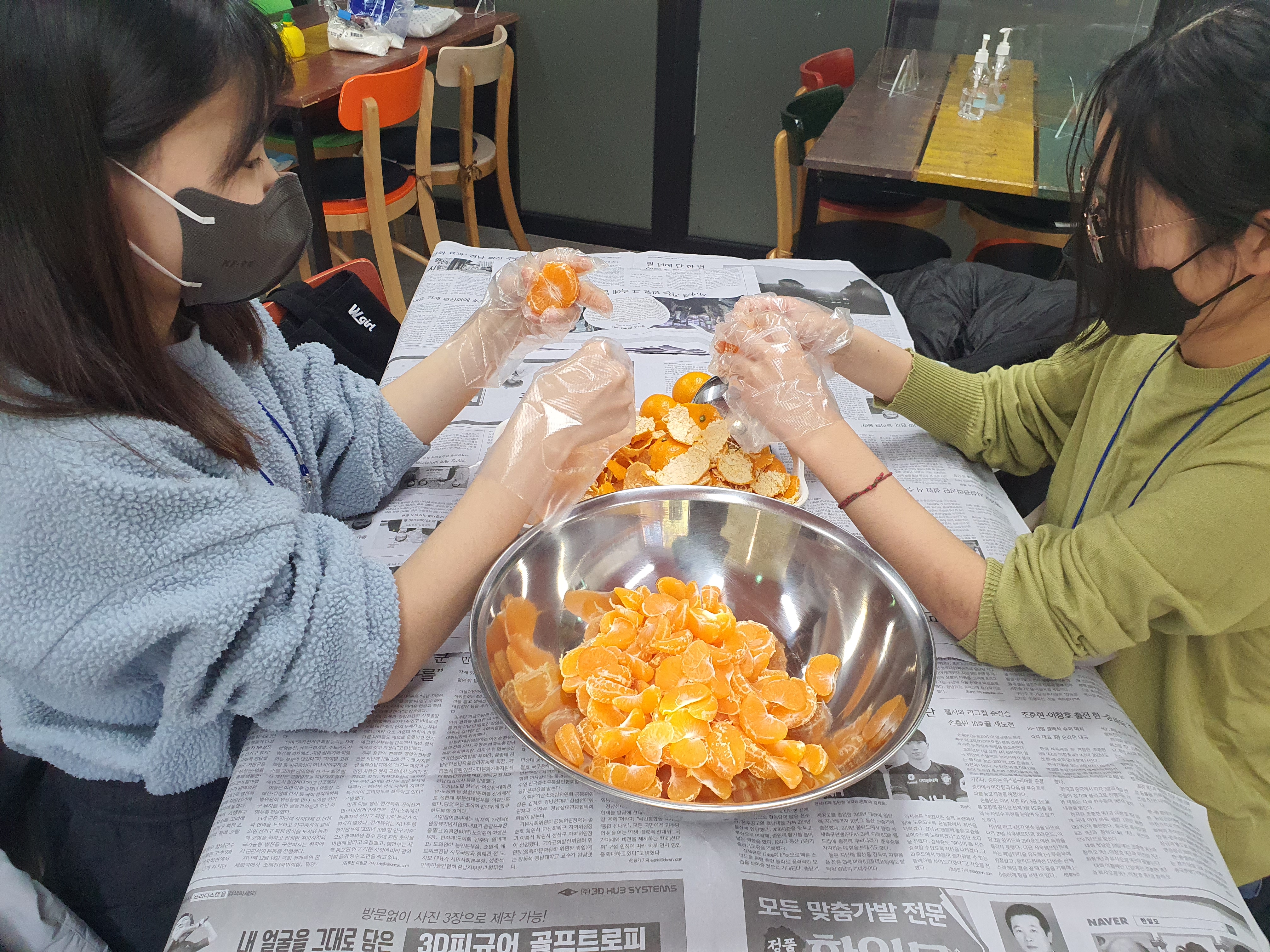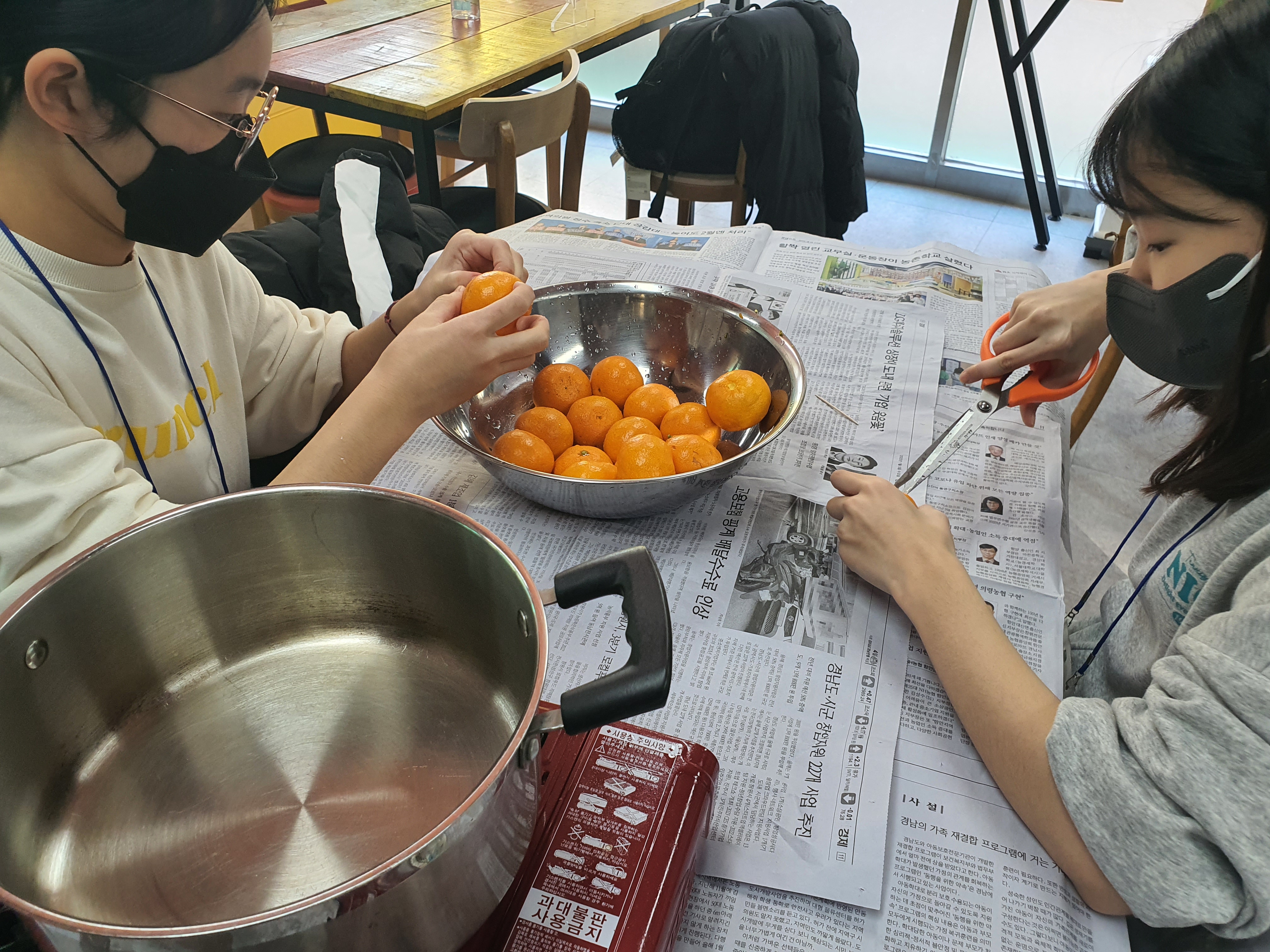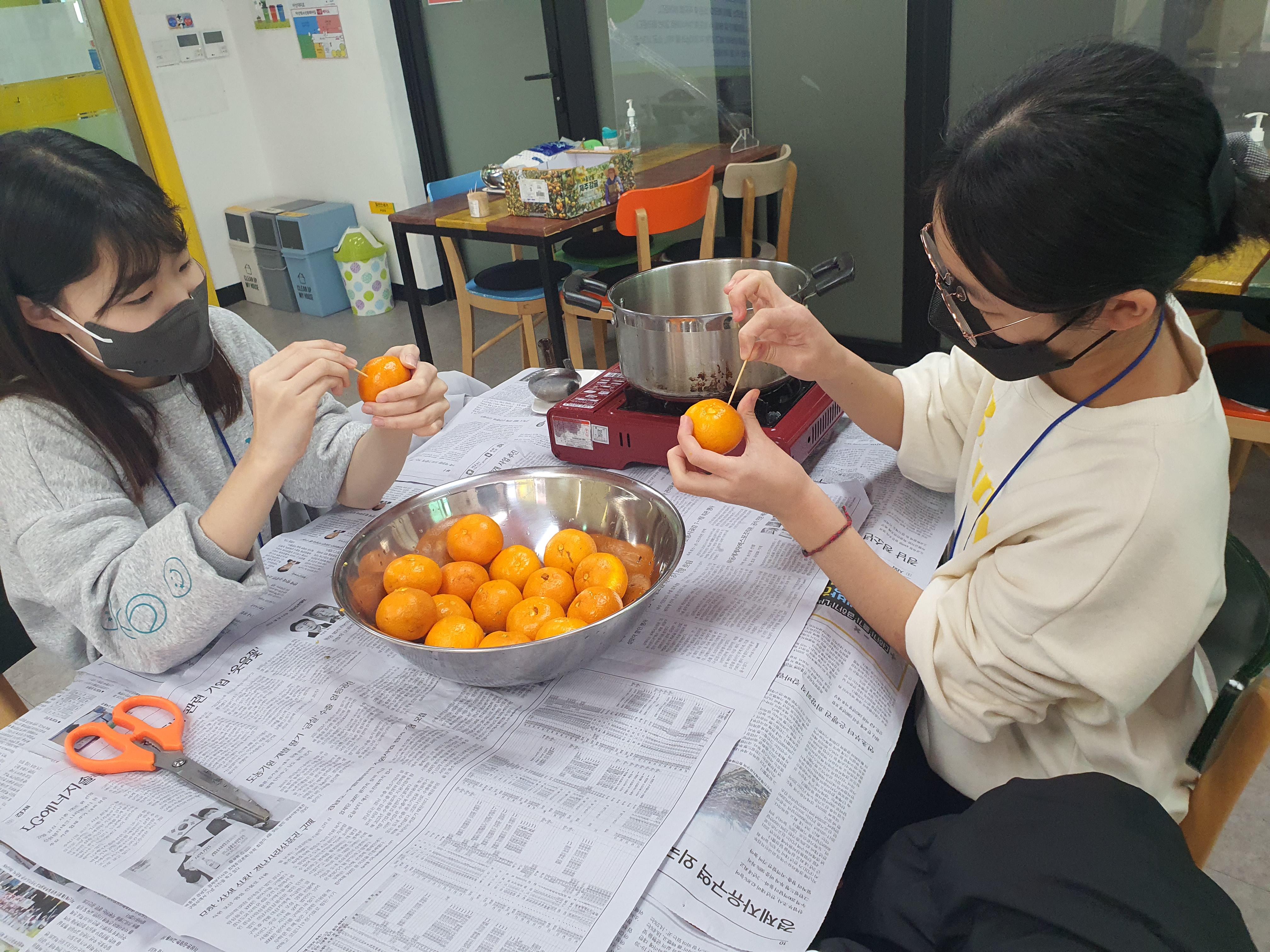 이렇게 직접 만든 나만의 귤청과 귤마멀레이드로 집에서 홈카페 분위기를 내며 추운 겨울방학을 보낼 수 있게 된 우리 청소년들이었습니다!