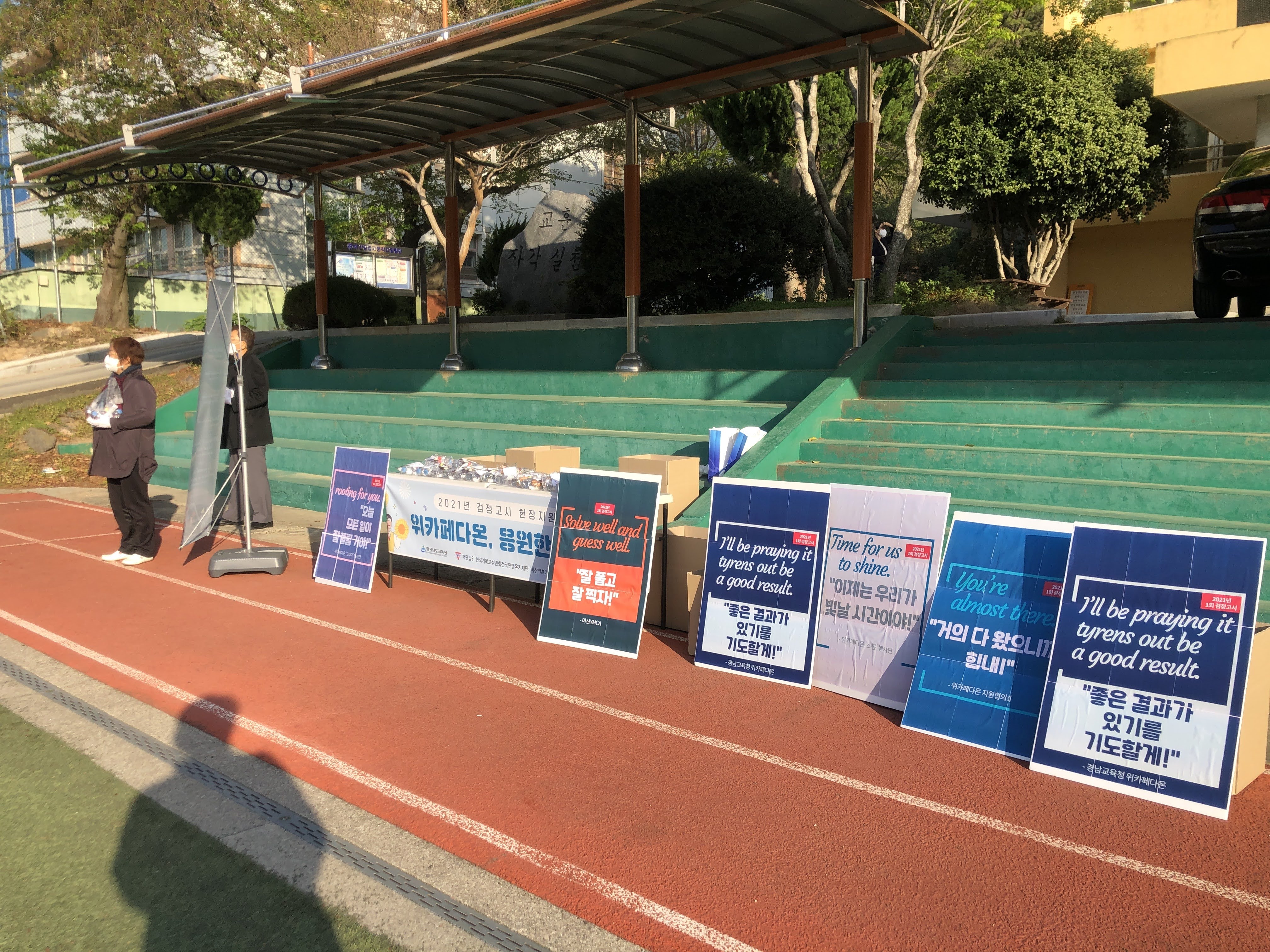 현장지원은 창원시에 있는 검정고시 시행 고사장을 직접 방문하여 현장에서 시험에 필요한 물품을 나누어 줍니다.